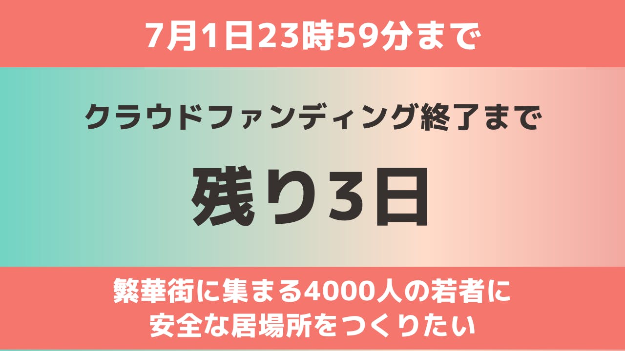クラウドファンディング終了まで、あと3日となりました!達成に向けてラストスパート頑張っていきます!