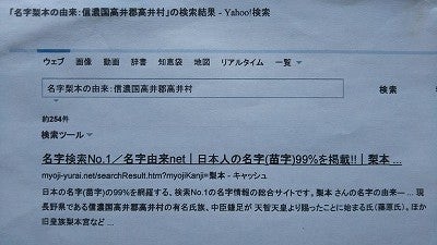 上記のネット検索(名字 梨本の由来)の記述内容と符号している