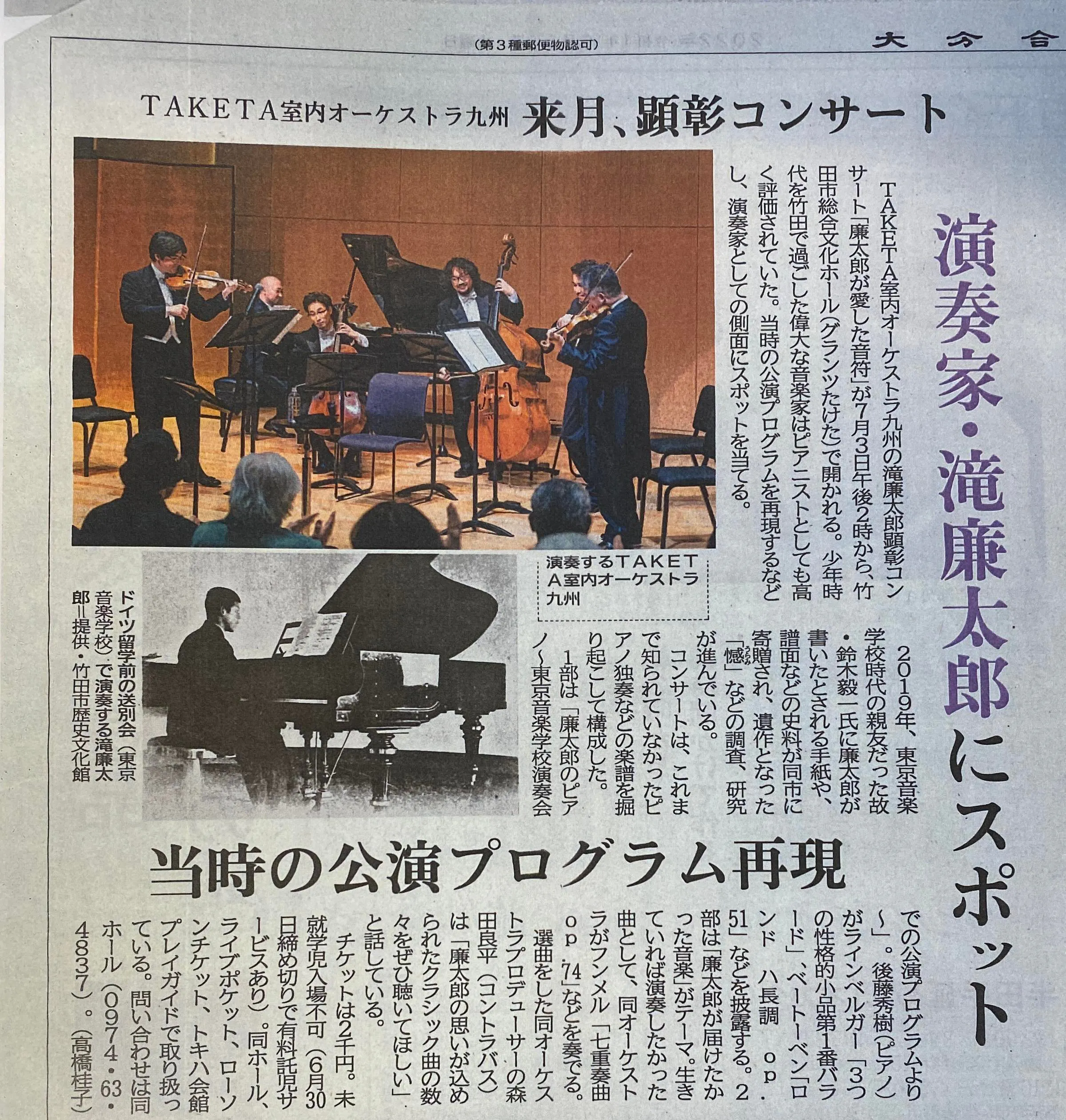 瀧廉太郎の音楽を掘り起こし、、発信して、、、
