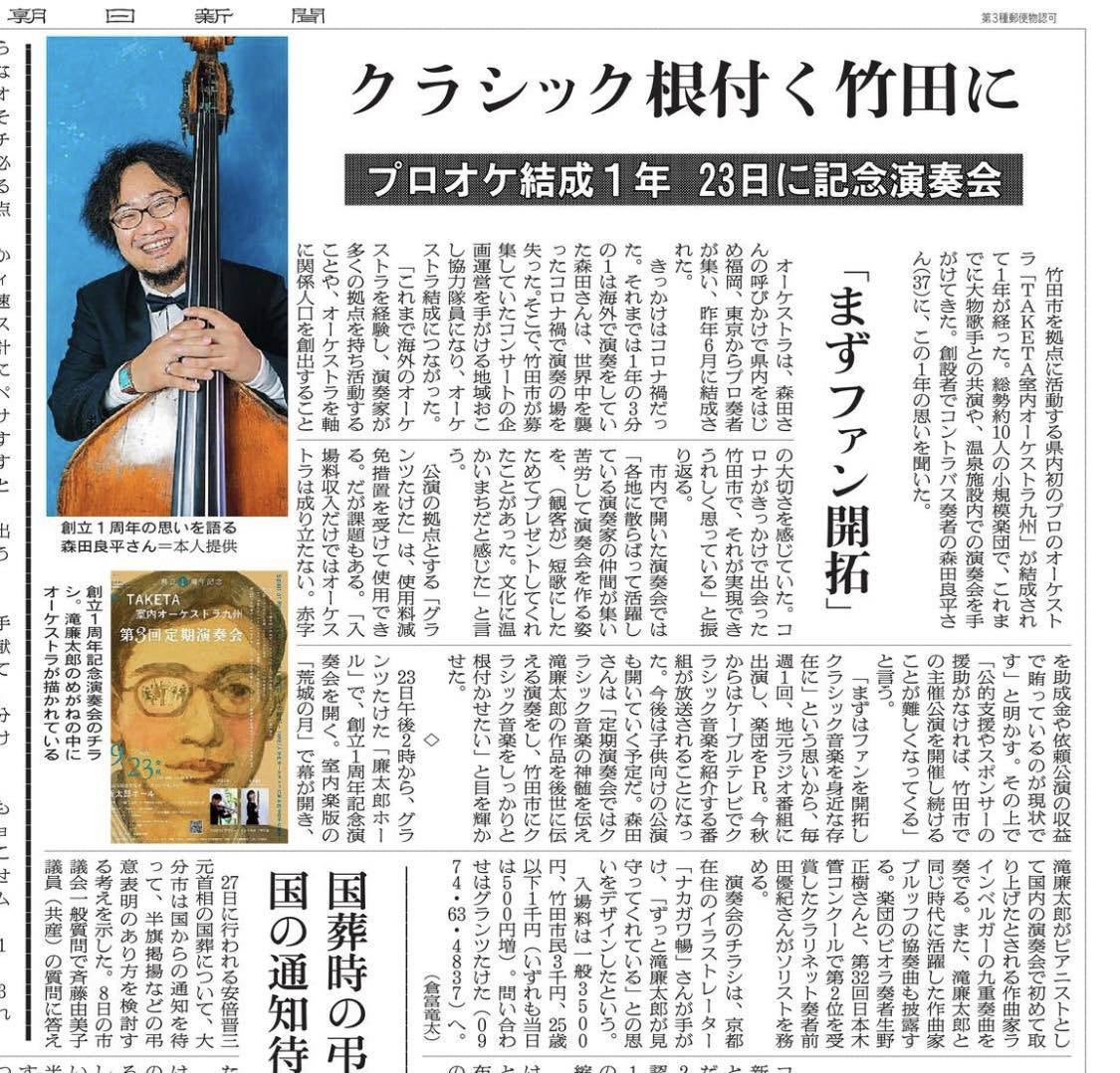 TAKETA室内オーケストラ九州は2023年の廉太郎没後120年を機にアフターコロナでの世界へと目を向けた活動を展開するためにRENTARO室内オーケストラ九州として新たなスタートを切りました。