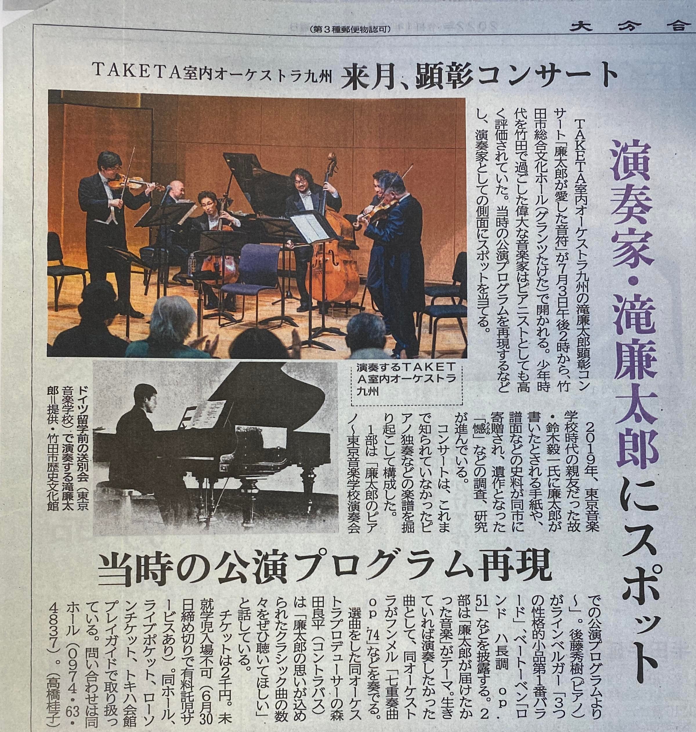 コロナ禍の2021年に大分県ゆかりの音楽家を中心に瀧廉太郎ゆかりの街・竹田市で創設された大分県で初のプロオーケストラ