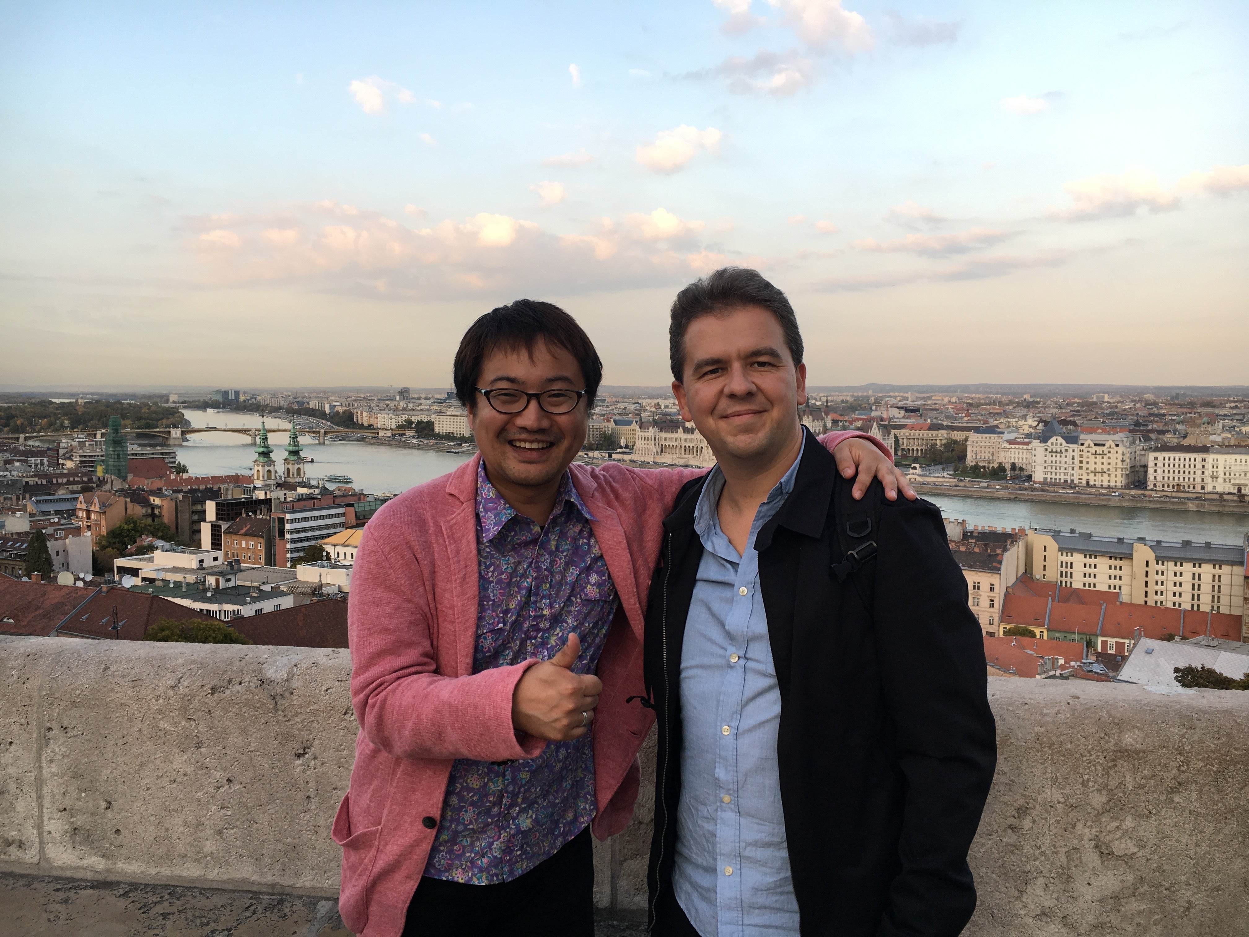 ドナウ響・ホルバートガーボルさんとドナウ川をバックに