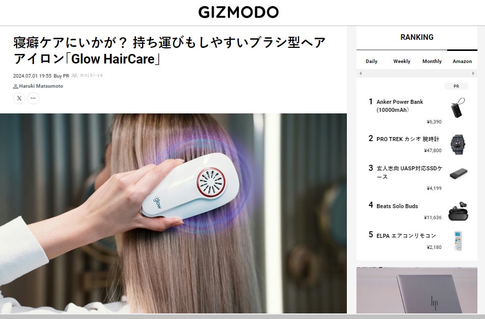 7月1日、Gizmodoで「Glow Hair Care」を紹介して頂きました。