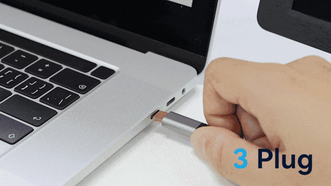 ③ Type-CケーブルをCrowViewとデバイスの両方に差し込んで接続したら使用可能です。
