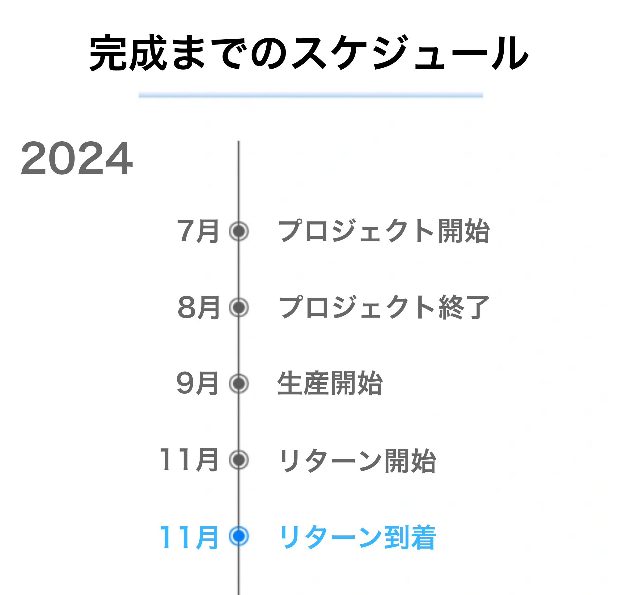 ※本文中に記載させていただいたスケジュールは、あくまでプロジェクト公開時点の予定です。クラウドファンディングの性質上、配送遅延のおそれがございます。