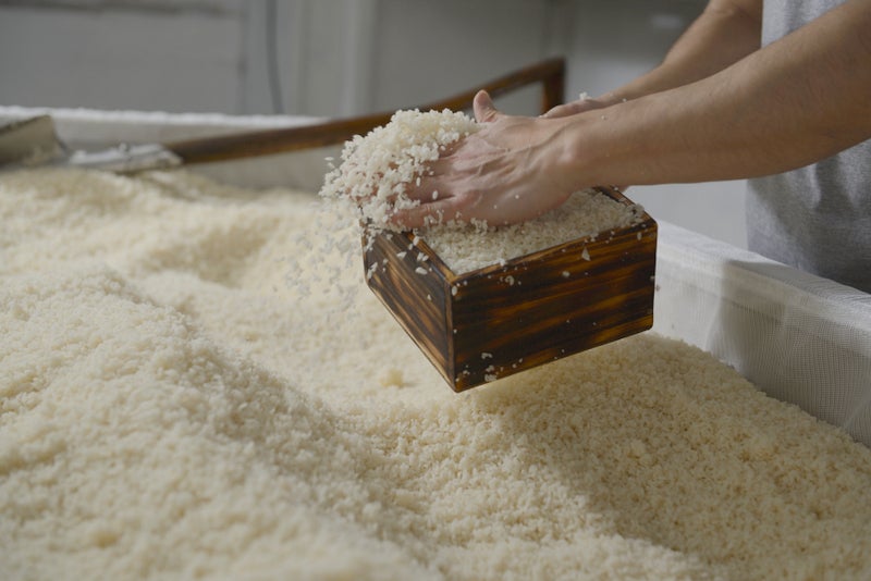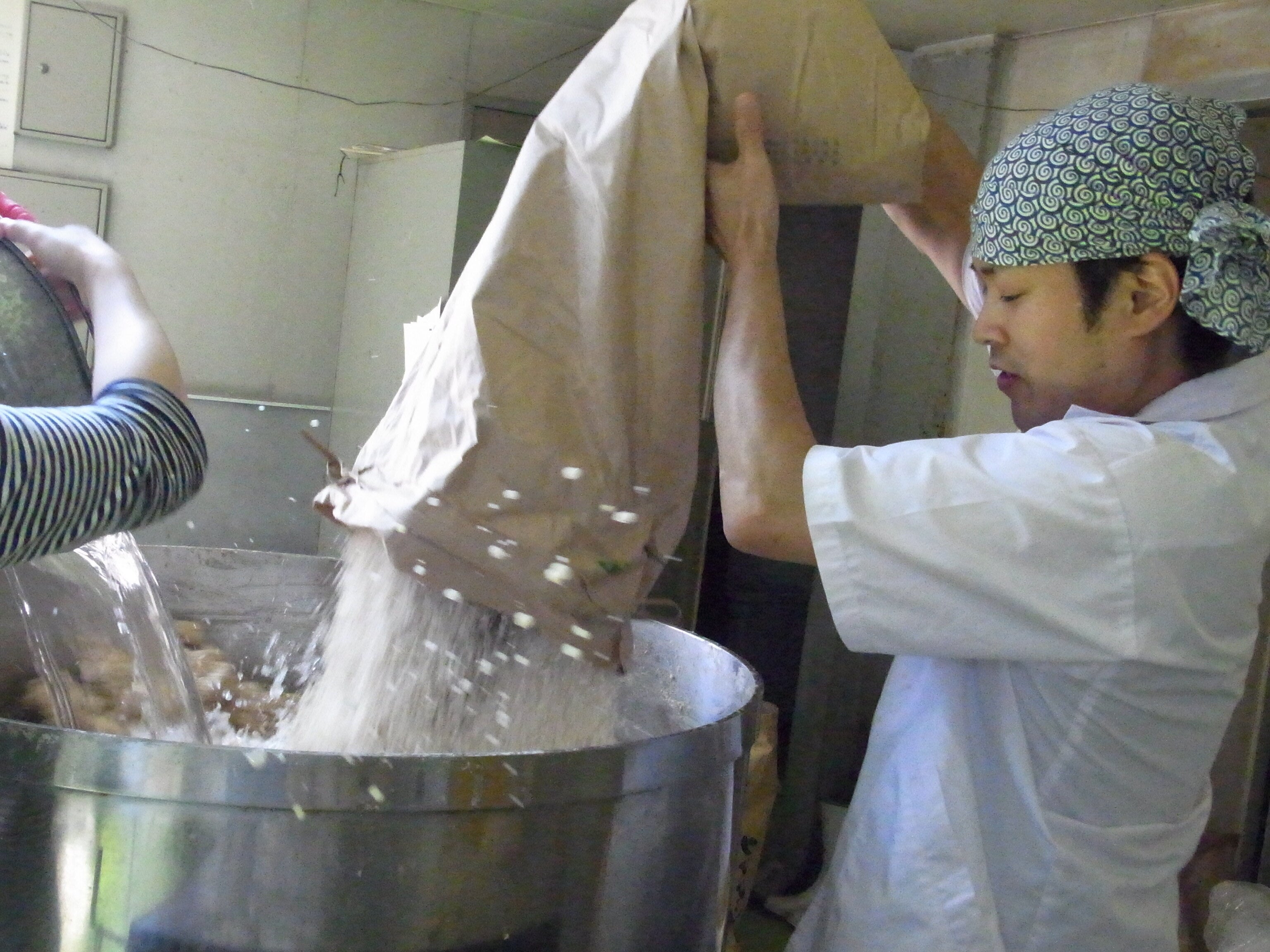 糀作りは、決して楽な仕事ではありません。糀は生きている菌のため、私たち人間が糀に合わせてものづくりをしなければいけません。暑い夏でも、さらに暑く、香りが立ち込める部屋の中で汗をかき、糀に触れ、重い糀を持ち上げます。