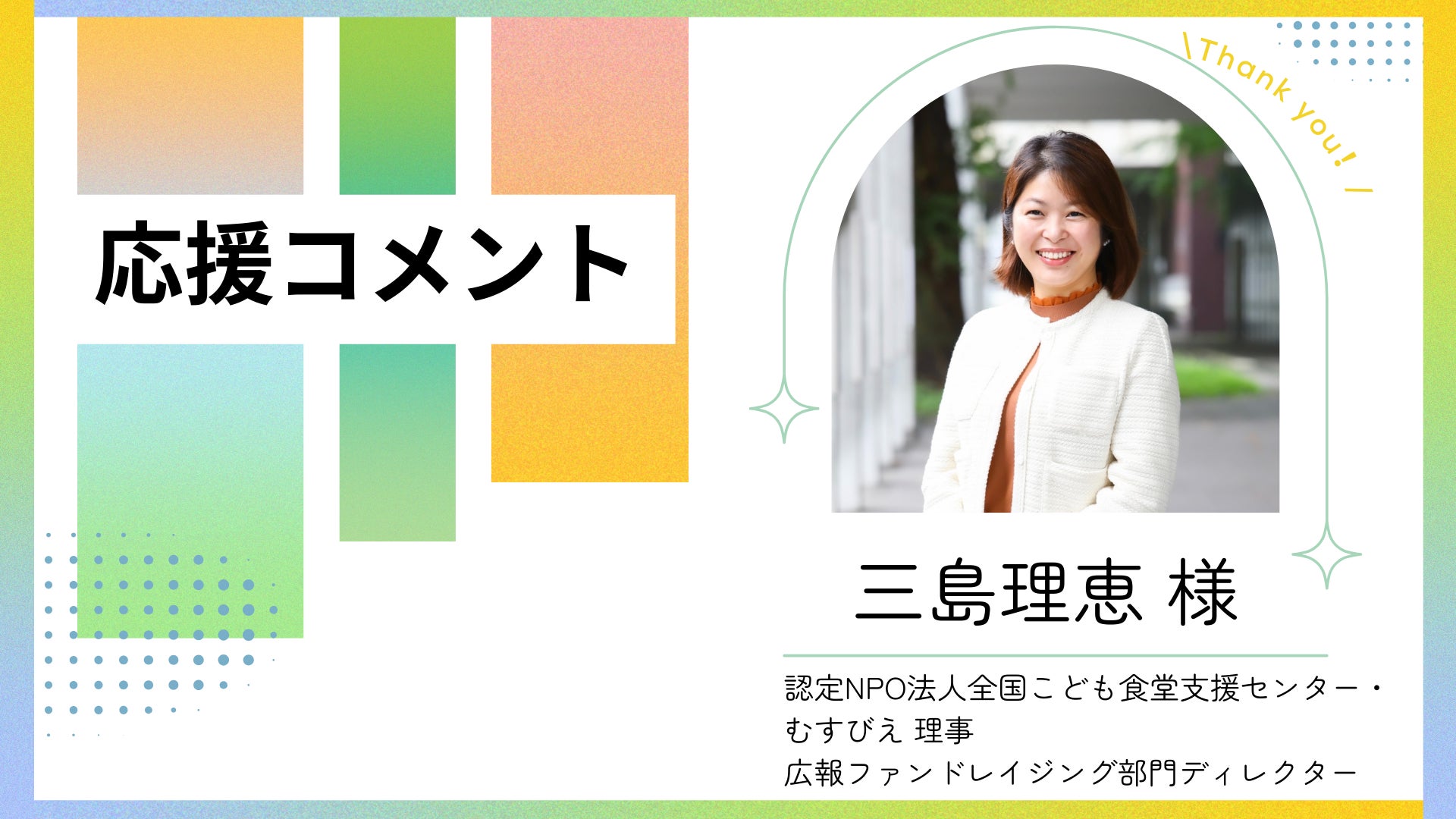 NPO法人キリンこども応援団さんは、子どもたちに寄り添い、積極性を大切にしながらフリースクールやこども食堂等の事業運営をされておりますことに心から感謝いたしております。 新事業では、生きづらさを抱える高校生による民泊事業を立ち上げるということで、経営の実体験を通じ、生きる力なども身につけていただけることを期待しています。このクラウドファンディングが成功し、チャレンジする学生の皆さんが新たな学びで大きく成長されることを願っています。