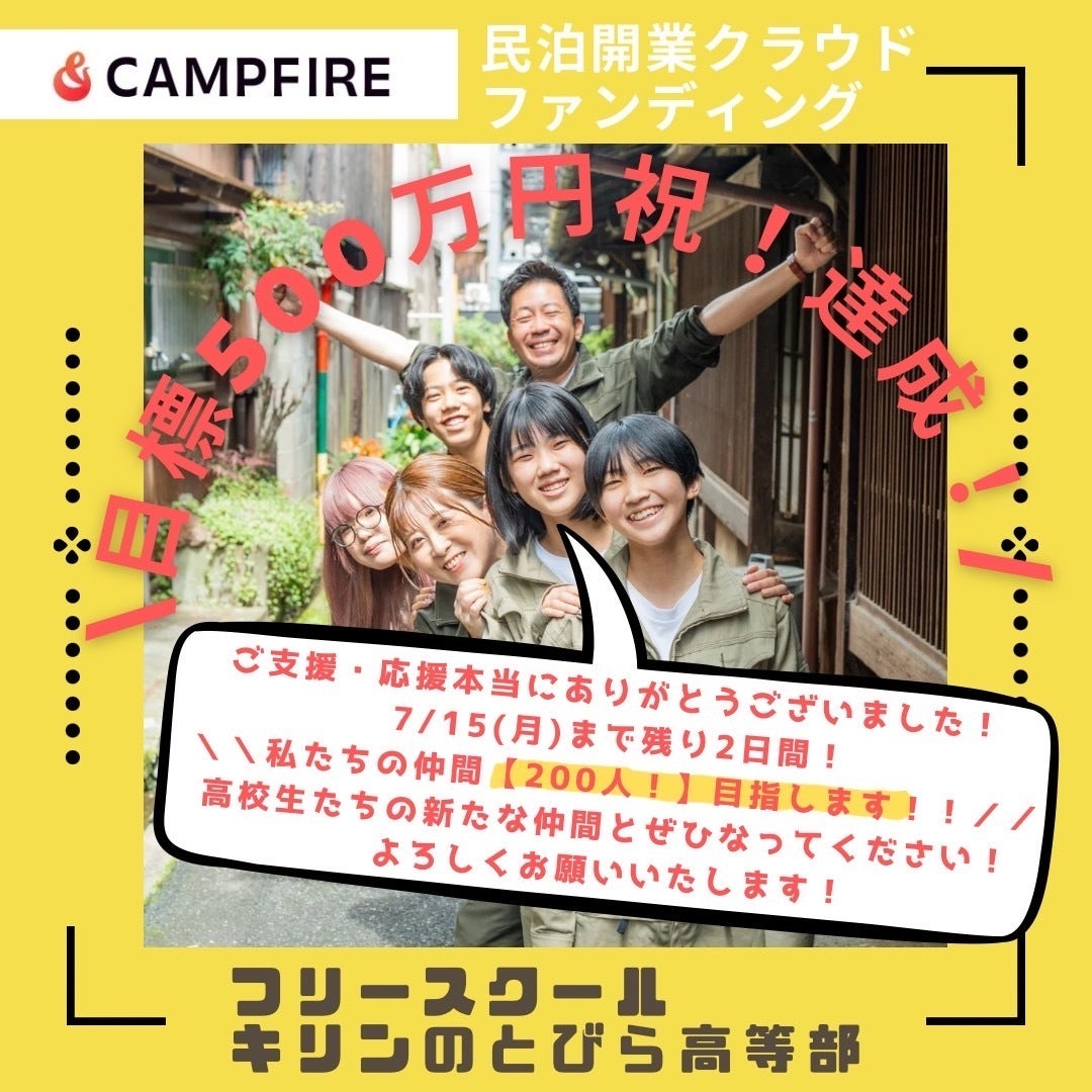 改めて、クラウドファンディングにご支援いただいた皆様、本当にありがとうございました。7月13日にクラウドファンディングの目標を達成し、電話・メール・LINEなどで皆様にご連絡をさせていただきました。「気になっていたから毎日見ていたよ。達成、おめでとう!」「達成がスタート。これからも一緒に頑張ろう!」と何人の方からもお声がけいただきました。日頃、僕たちは子ども達を応援する立場ですが、クラウドファンディングを通して多くの皆様に応援いただきました。改めて、「応援って力になる」「一人じゃないって大事なんだ」と強く感じました。応援してくれる人たちがいるから僕たちは頑張れます。今回の挑戦は、明日7月15日23時59分まで続きます。僕たちは、あと1日+半日で200人の仲間を作ることを目標にしています。目標まであと20人です。僕たちは皆様の想いをカタチにして、子ども達に橋渡ししていきます。一緒に社会を一歩進めましょう!!