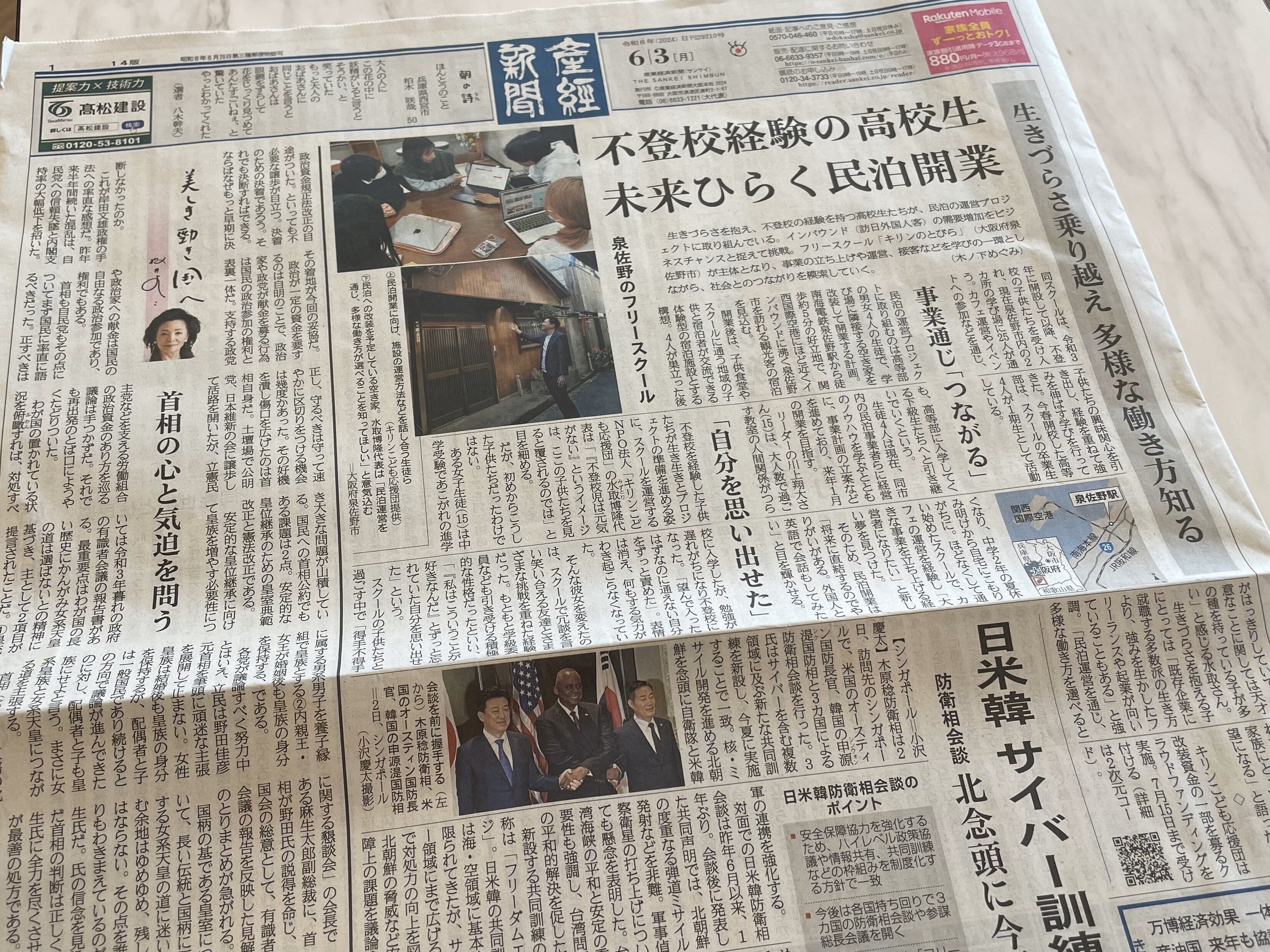 おはようございます!なんと、6月3日の産経新聞(朝刊)1面トップ記事でご紹介いただきました。私たちとしても1面トップ記事は初めてのことなので、とっても驚きました!それも、こんなに大きく・・・。取り上げていただいた産経新聞社様、そして丁寧に取材いただきました記者の方に本当に感謝です。web版の記事はこちらになりますので、ぜひご覧いただければ幸いです!皆様のおかげで72名の皆様から3,021,000円のご支援をいただき、60%を超えることができました。温かな応援メッセージも多数いただき、たくさんの勇気をいただいております。目標達成まで約198万円!約60名の方のご支援が必要となります。クラウドファンディングは私たちの活動を多くの方に知っていただける機会です。期間終了まで多くの発信をして、多くの方にお会いしたいと思います!さぁ、本日も元気いっぱい頑張ってまいります!引き続き、応援の程、宜しくお願いいたします!