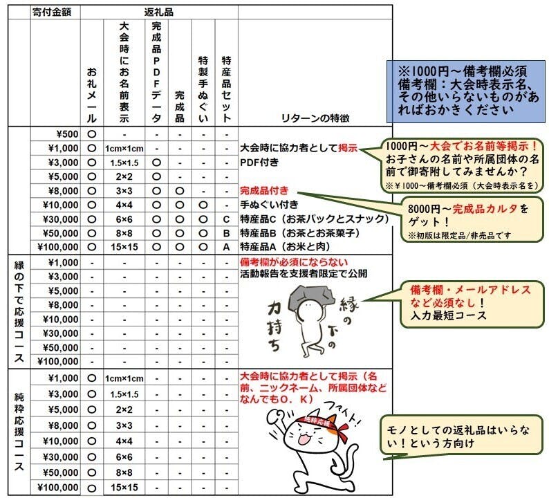 アーツカウンシルみやざきの支援をいただき、イベントや公募を実施しています。かるたの印刷等、作成に関する資金については別途資金が必要なため今回のクラウドファンディングに挑戦しました。