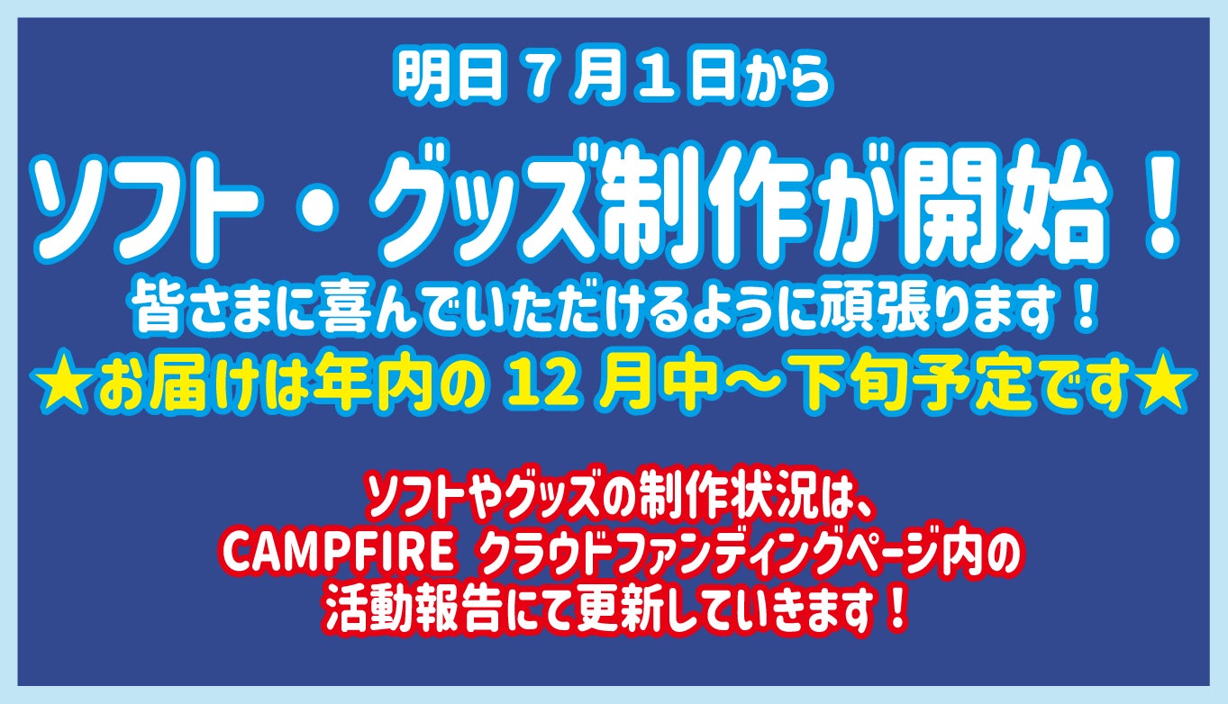 そしてソフトとグッズの制作進捗につきましては、こちらの活動報告にて更新させていただきますので、お楽しみにしていただければ幸いです。