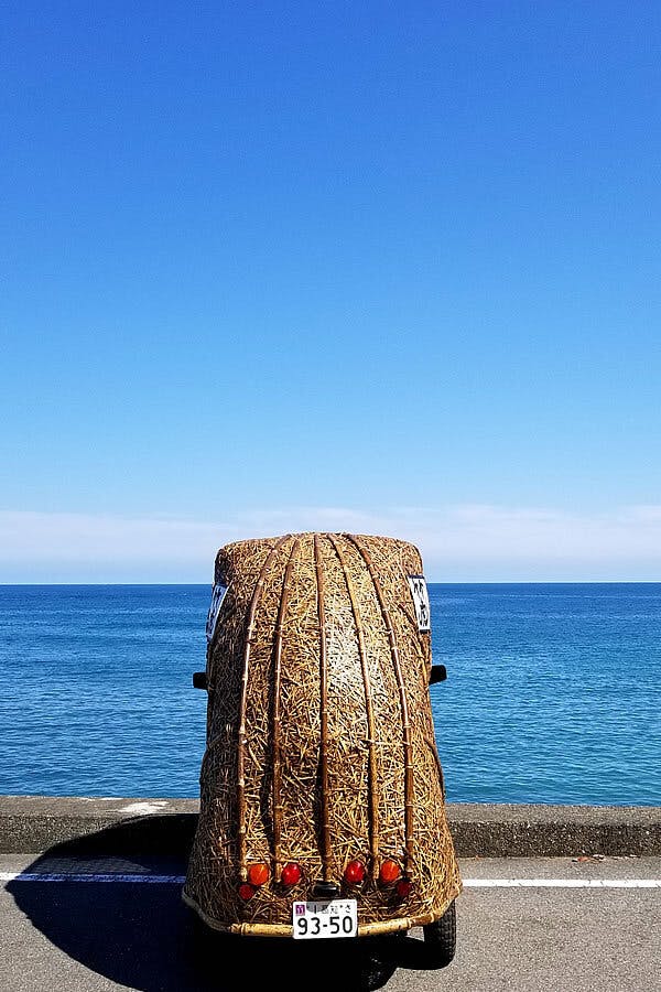 日本唯一の虎竹電気自動車「竹トラッカー」のような車体を