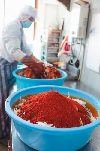 皆さんのために誠心誠意、一つ一つ手作りでキムチを漬けております!皆様からの美味しいが聞きたくて、手が真っ赤になろうとも漬け続けていきます!