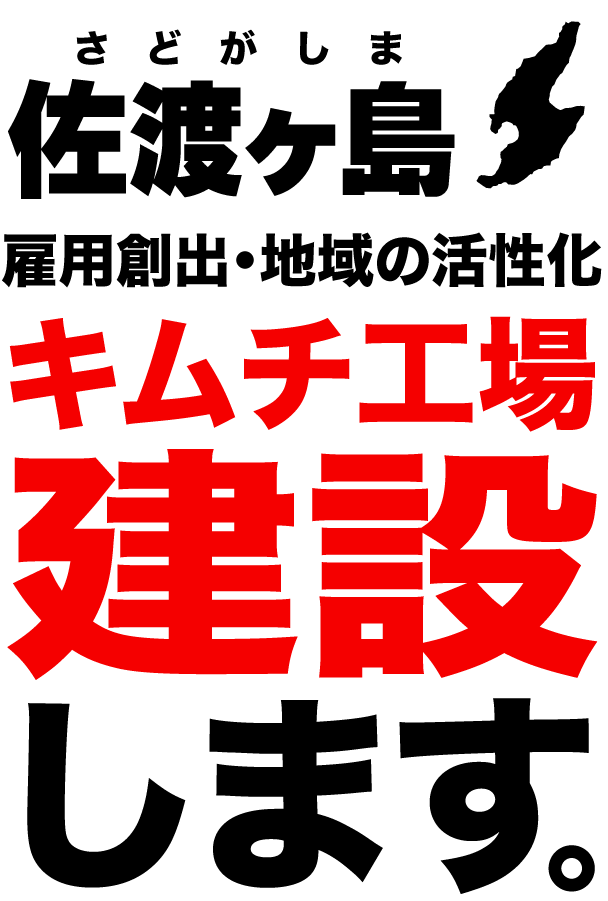 皆様のご支援を力に、佐渡ヶ島のキムチ文化を守り、地域活性化にも貢献していきたいと考えております。