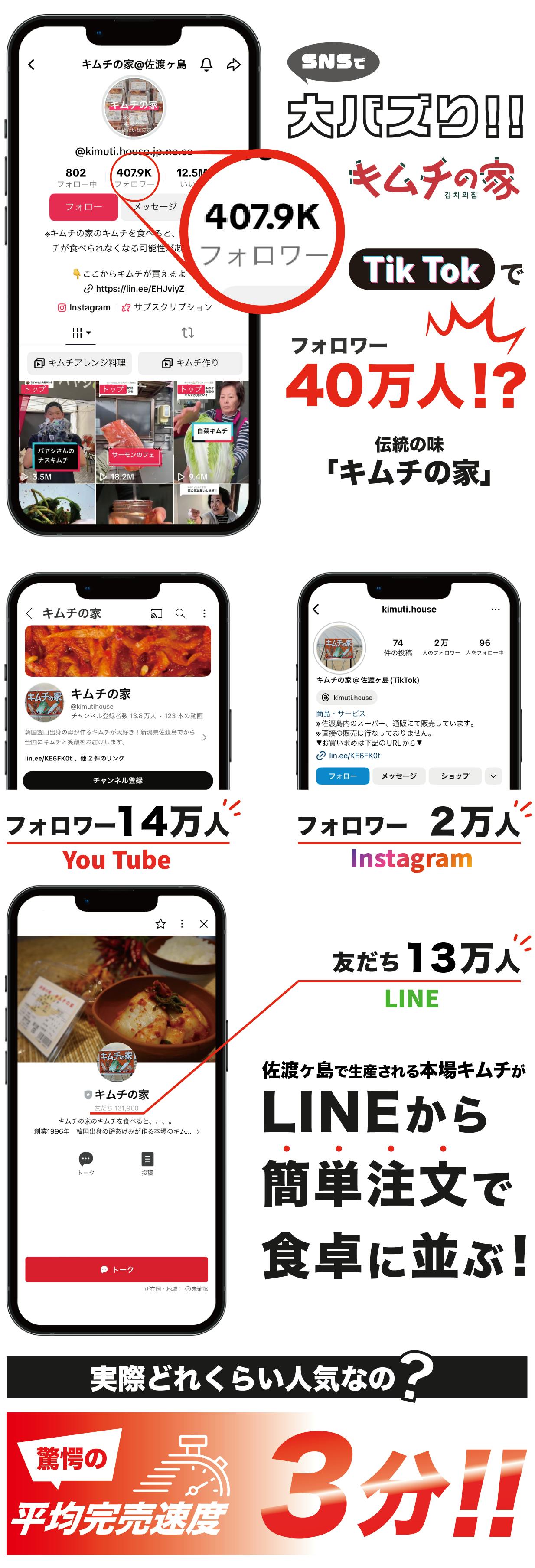 母さんの愛情と韓国の伝統が織りなすキムチは、多くの人を魅了する深い味わいです。近年、SNSで話題となり、全国から注文が殺到!ありがとうございます!!
