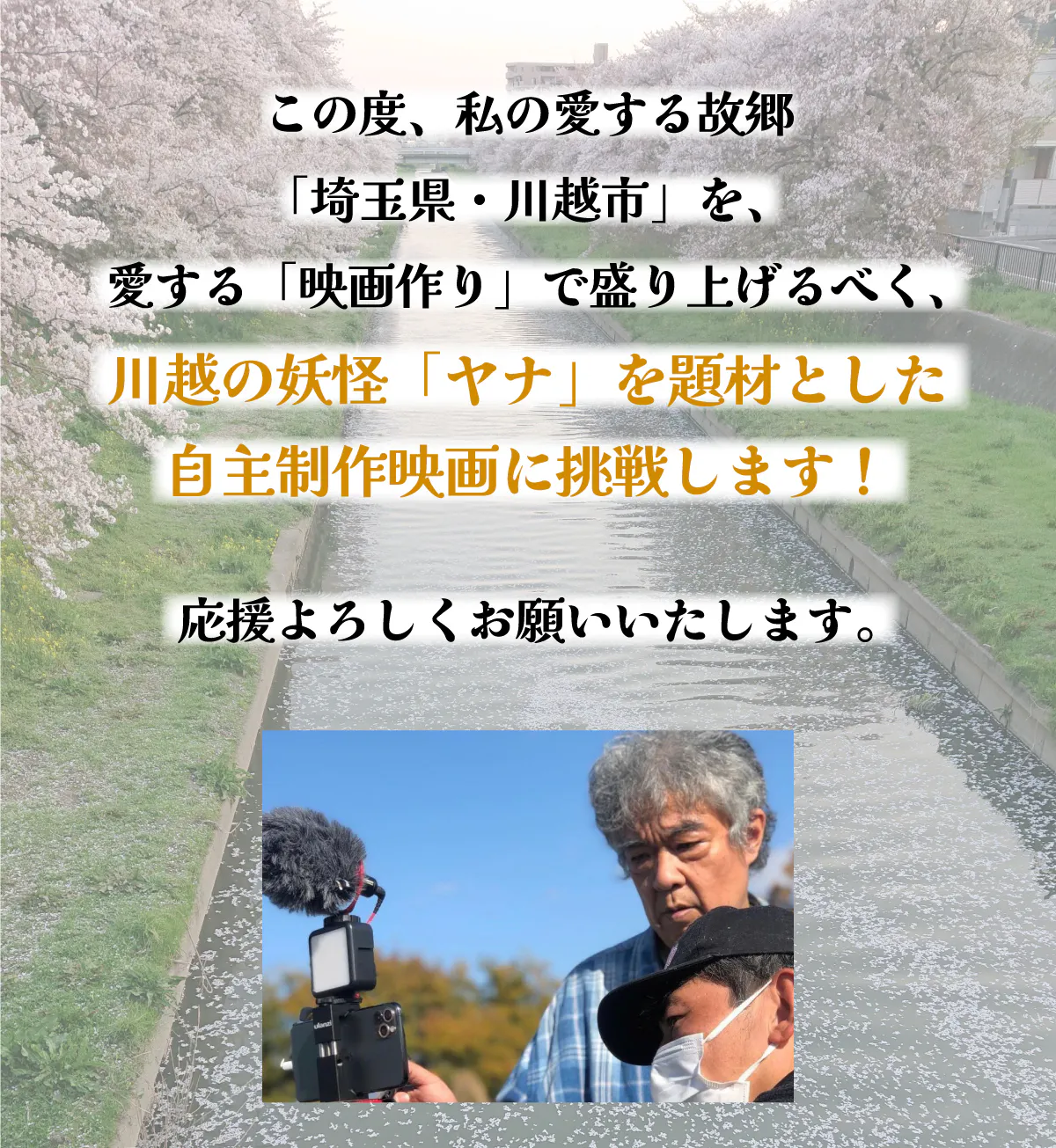 川越を盛り上げ、子どもたちの心を救い、映画産業に新たな風を吹かせる最高の作品を作り上げたいと考えています。