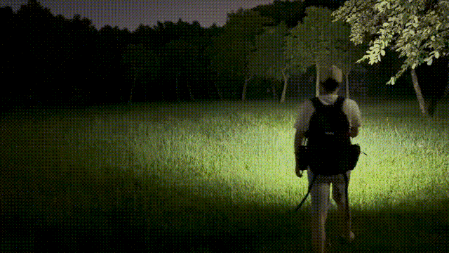 最大120mの照射距離で足元がはっきりと確認でき、登山やキャンプなどの夜間行動も道を遠くまで照らして前方の安全を確かめます。夜間の散歩やキャンプ場、被災時や停電時などで広範囲を照らしたい場合に便利です。