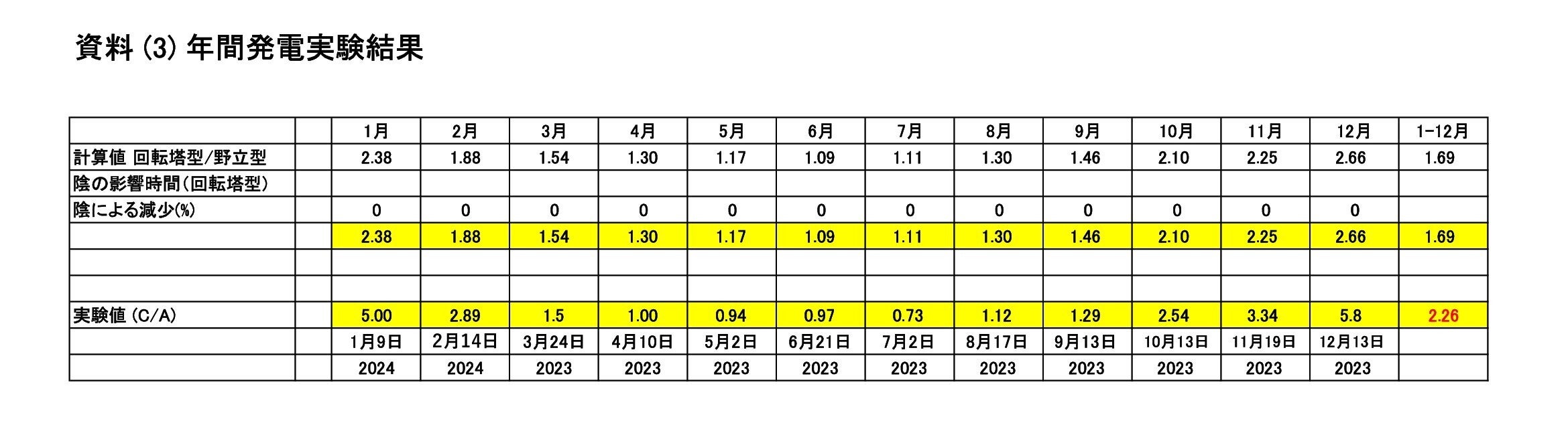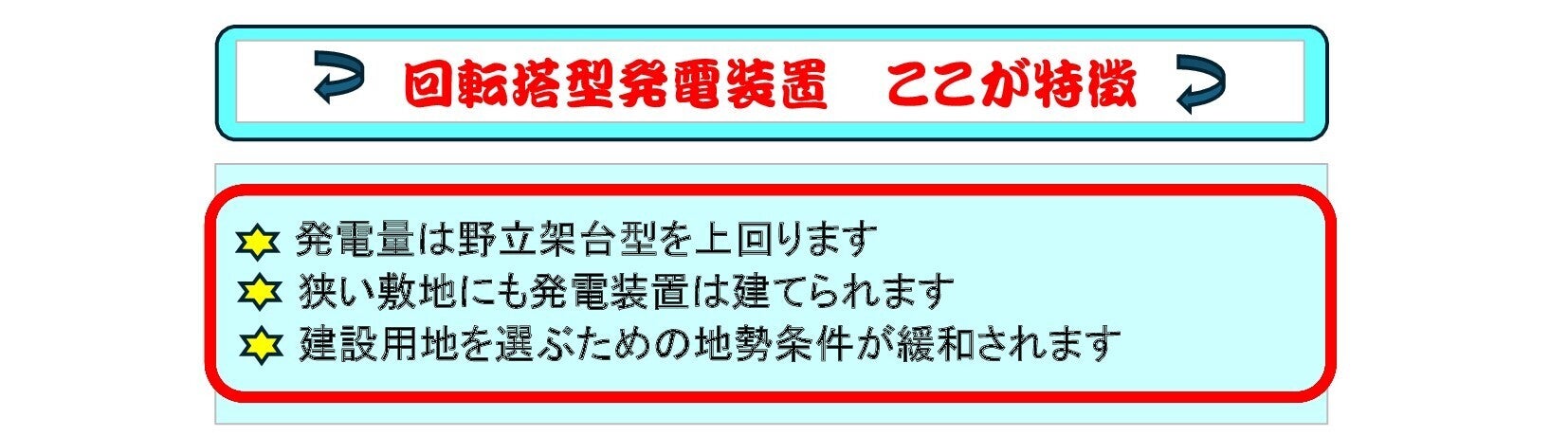 - - 発電量比 : 回転塔型 / 野立架台型 = 1.5 (実証実験により確認)