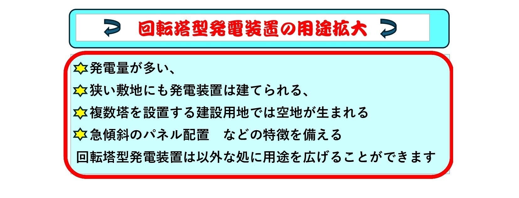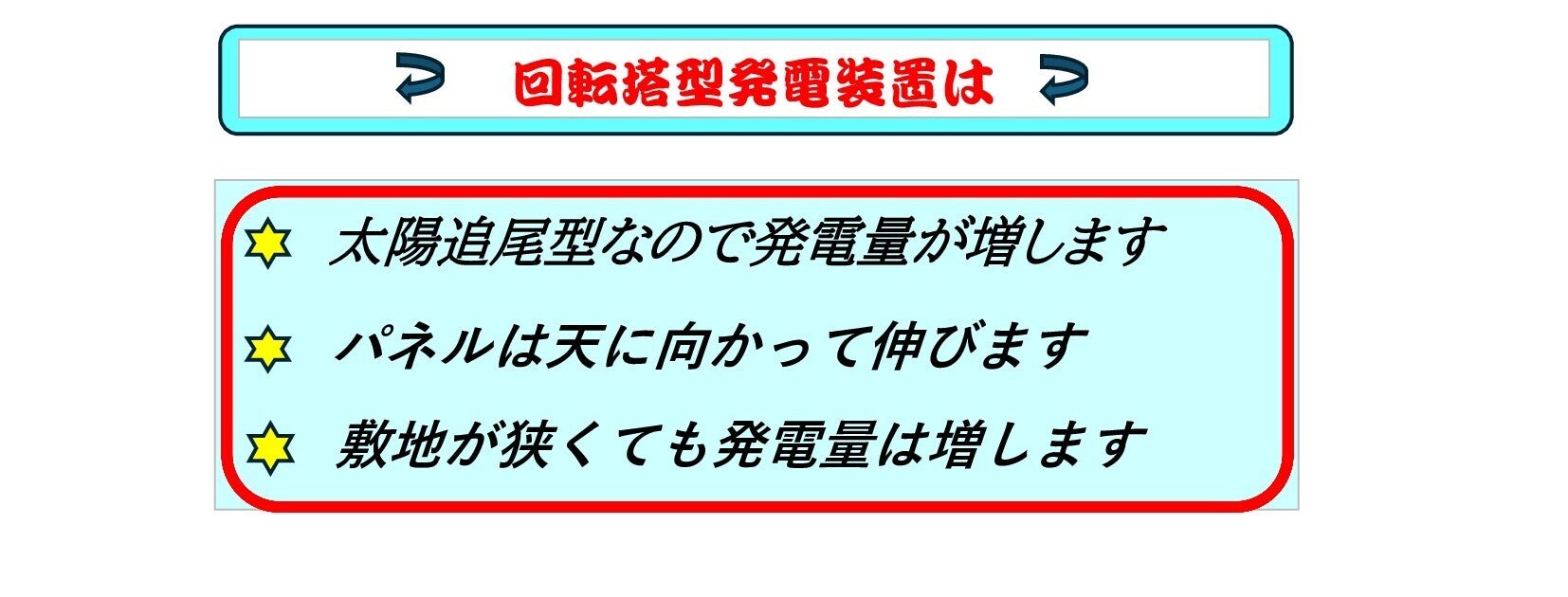 ・「野立架台型」発電装置のパネルが平面的配置に対し、「回転塔