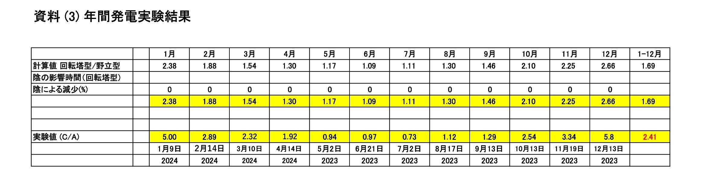 すると発電量は急減する ● 添付資料 (3) 年間発電実験結果