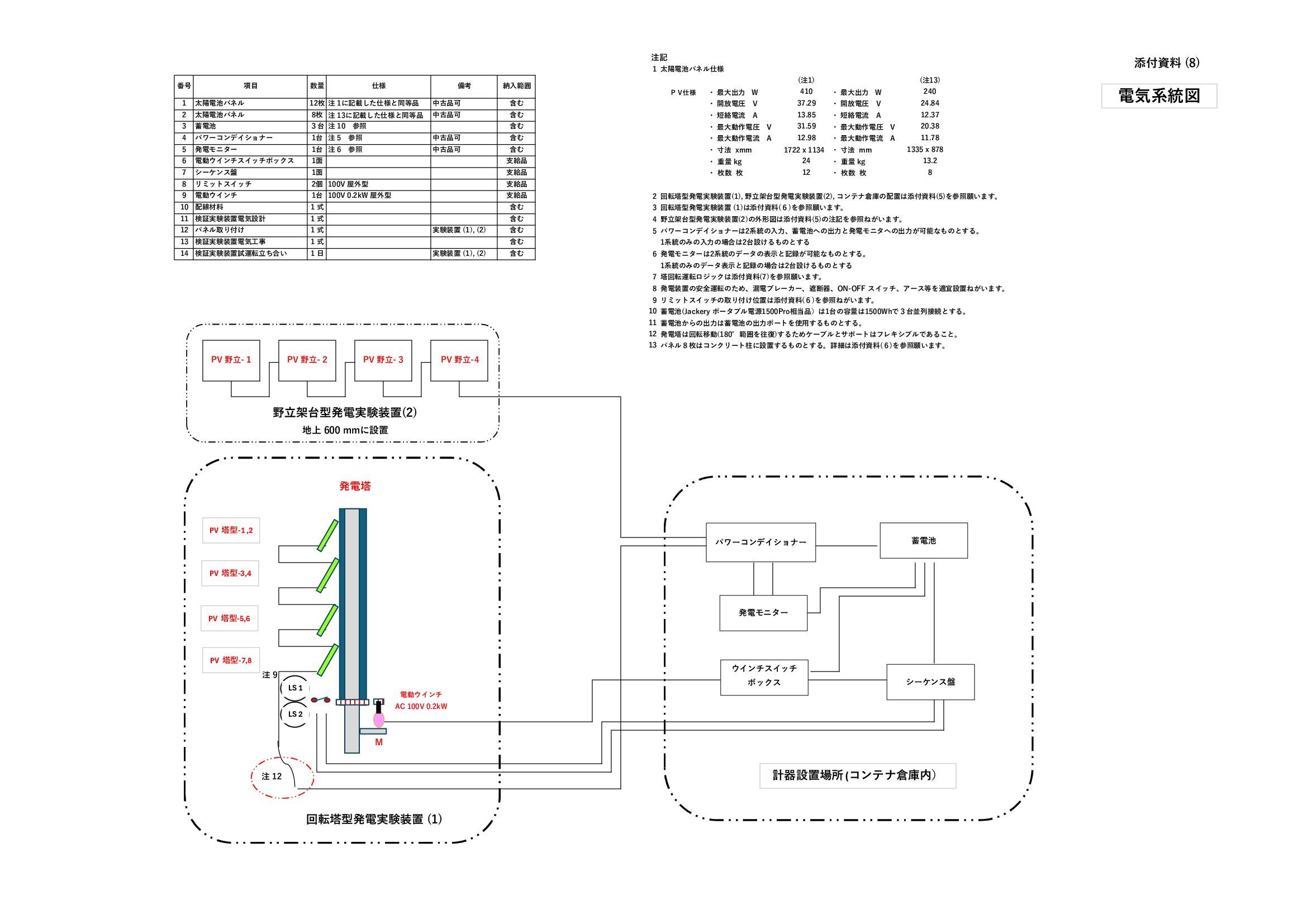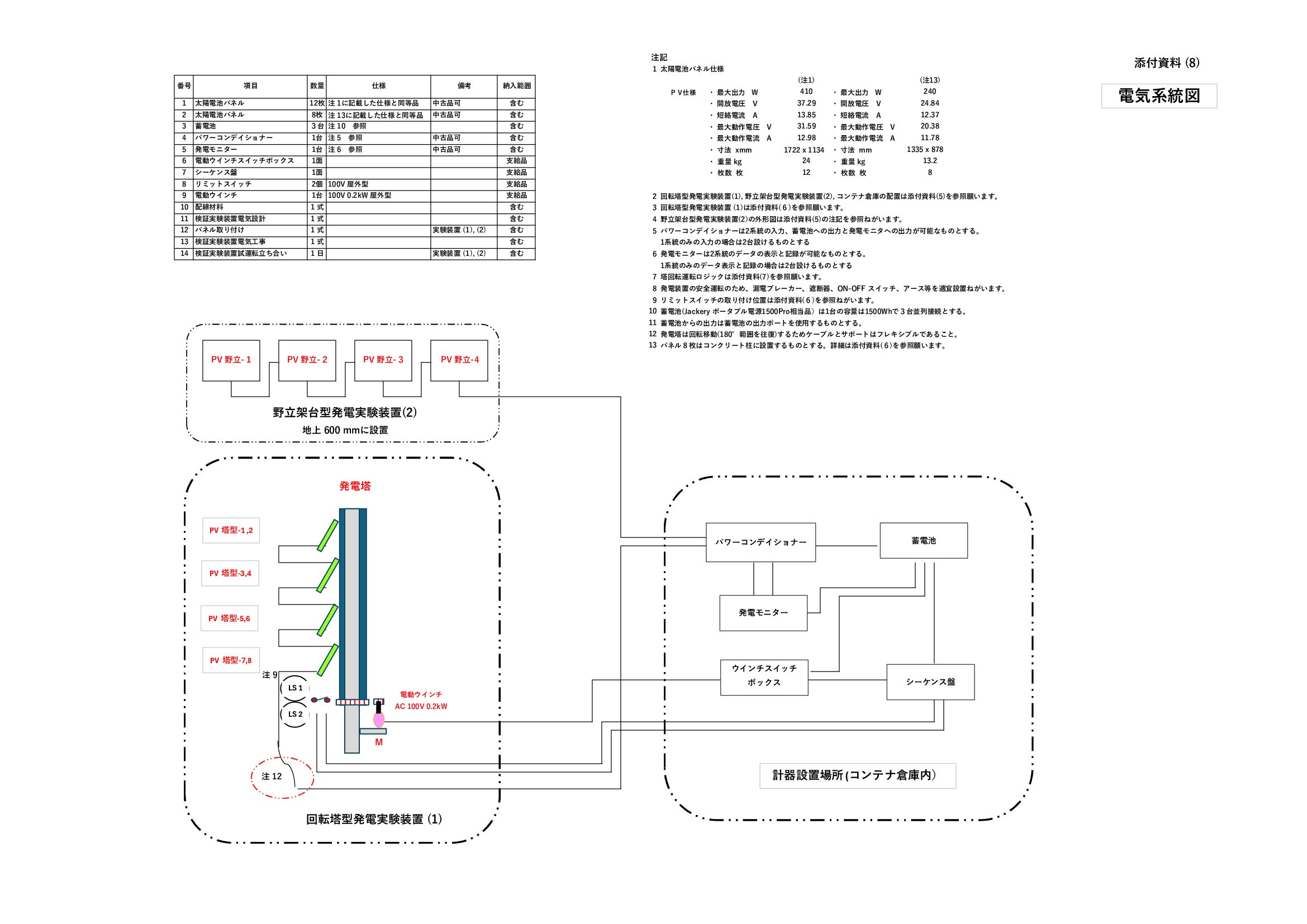 だシーケンス盤を設ける - ・「回転塔型」「野立架台型」夫々の発電量を記録するためのモニターを設置