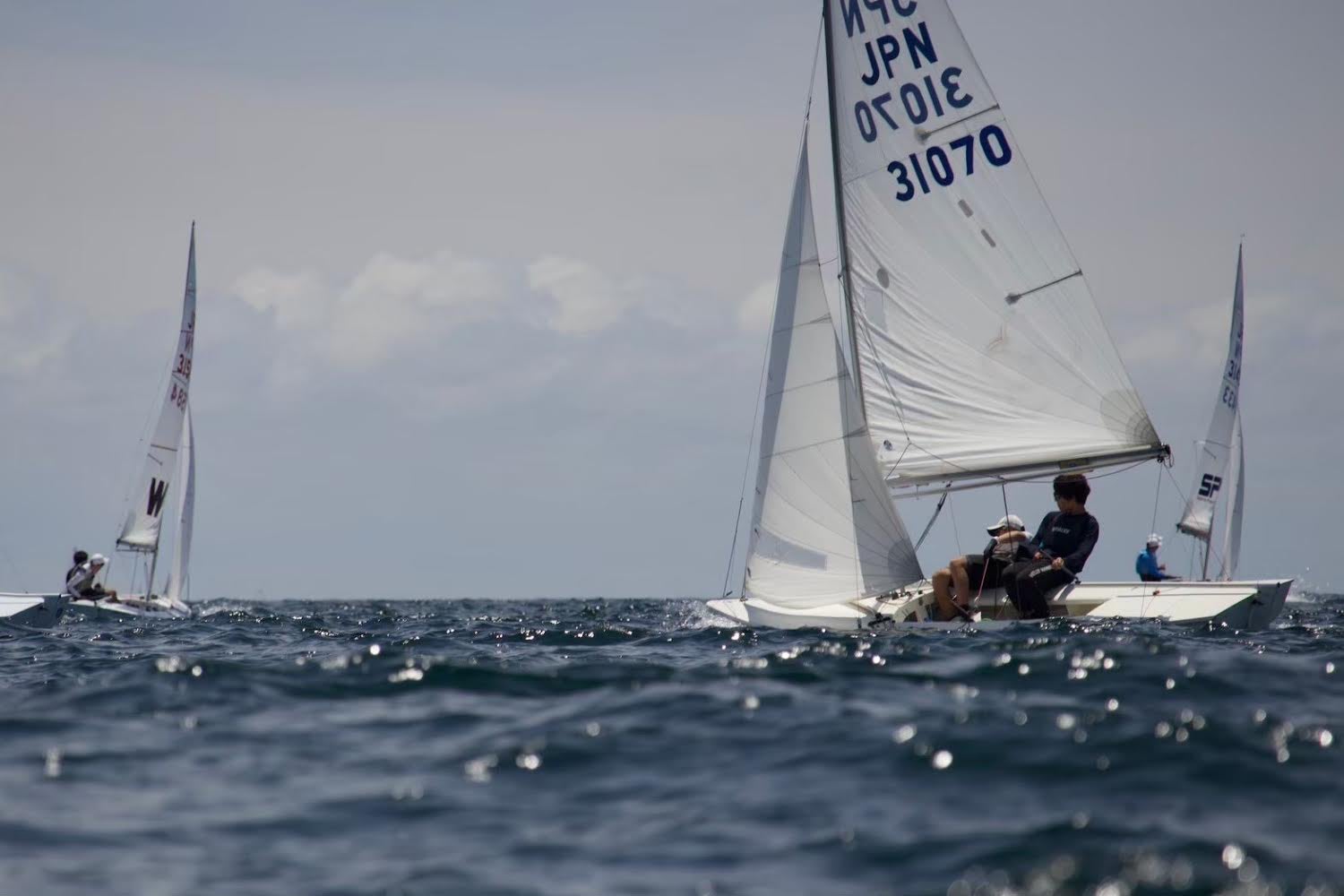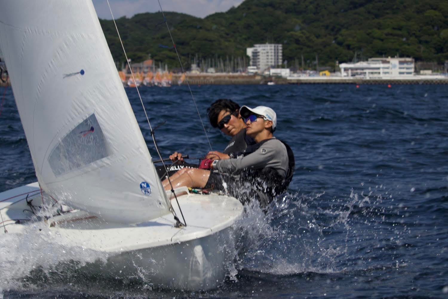 東大ヨット部の後輩たちと走り合わせやラウンディング練習を行い、学生主導の合同コース練習にも参加しました。 軽風から強風まで、様々なコンディションでの練習を通して、船のセッティングや2人のコンビネーション、走りに対しての改善点を話し合い、非常に有意義な練習をこなすことができています。練習ごとに2人の課題も浮き彫りになり、まだまだ上達できる、というように感じていて日々楽しく取り組んでおります。