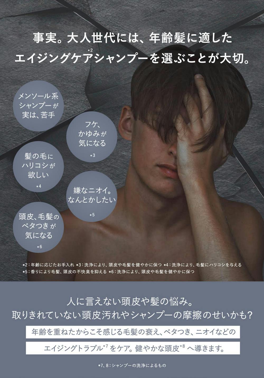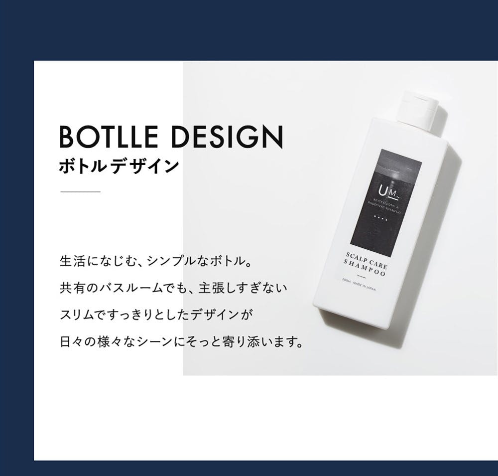 メンズ美容が普及している昨今、今回はメンズシャンプーの開発に取り組む事にしました。 シャンプーに関しては、独特の香りやメンソール配合など、メンズ製品特有なものが多いところに着目し、あえて、メンソール無配合、メンズ製品にあまりない製品を手掛けました。