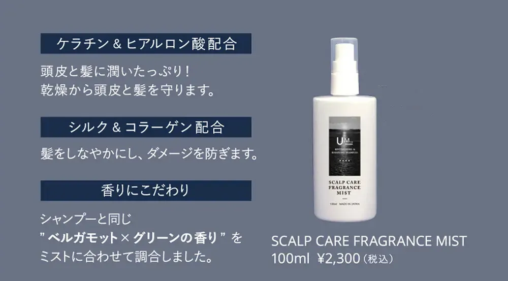 頭皮ケアや髪へのやさしはもちろん、香りにもこだわり試作を重ねてきました。ヘアミストを使用することでさらに香りを愉しむことができます。そのため、今回、セット販売をさせていただきます。