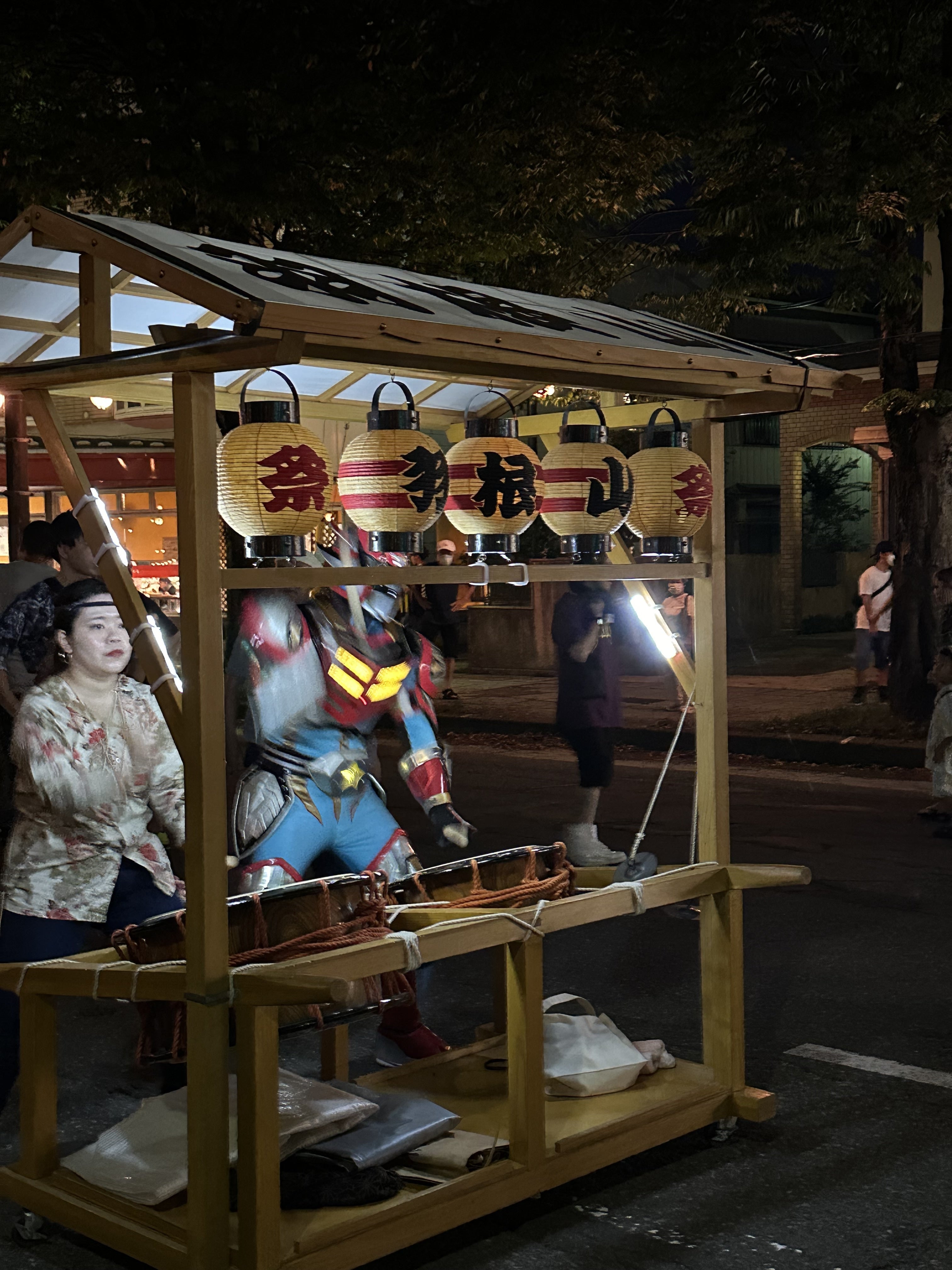 夕方からのお祭りですがじとっとした気候で汗でびっしょり。踊り手の皆さんに負けないように太鼓頑張ってきました!