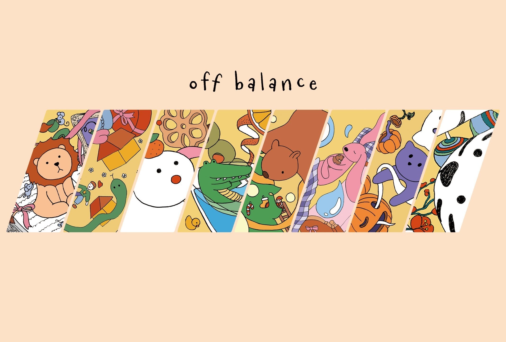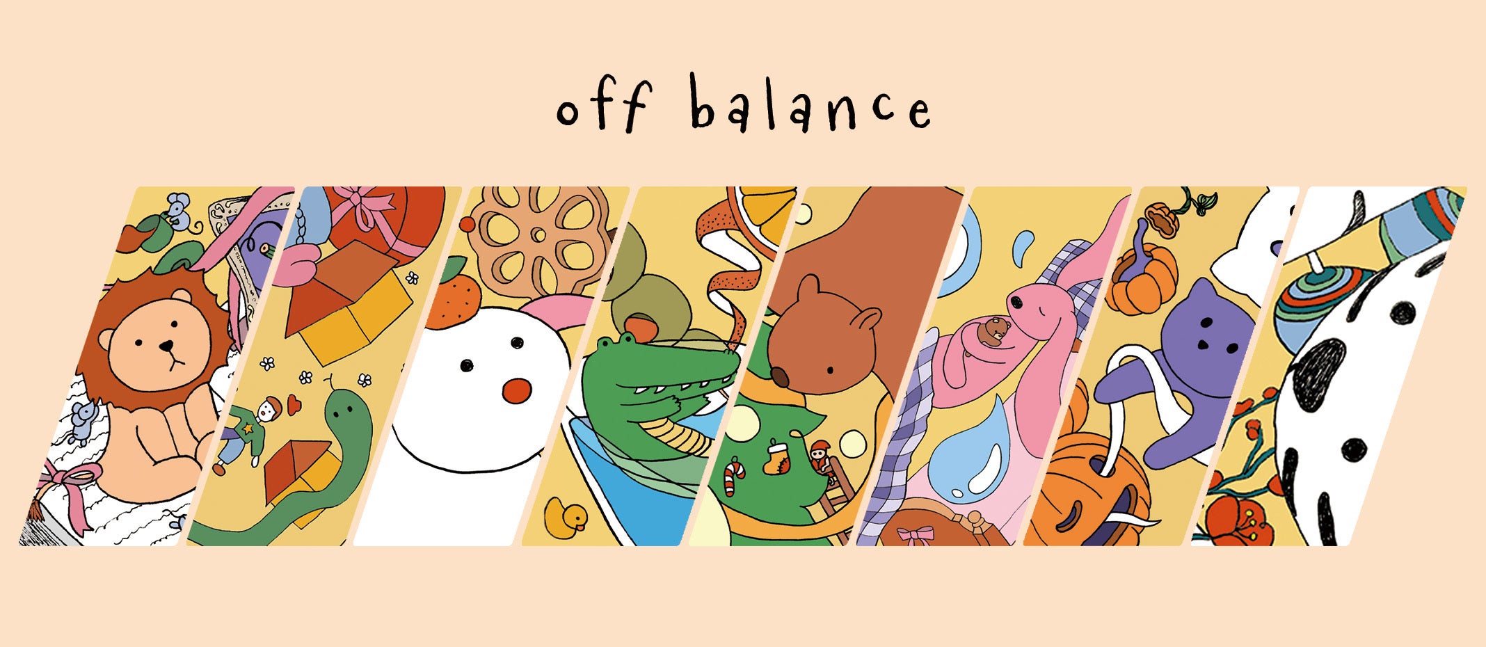 Kyo Kayamoto’s illustration series “Off Balance” portray the instability of life and anxiety that comes with it. Cute animal characters have their own struggles, yet they desperately seek love and connection. They encourage vulnerability and kindness towards others and to yourself, but above all, they invite you to our journey of finding love and peace of mind.