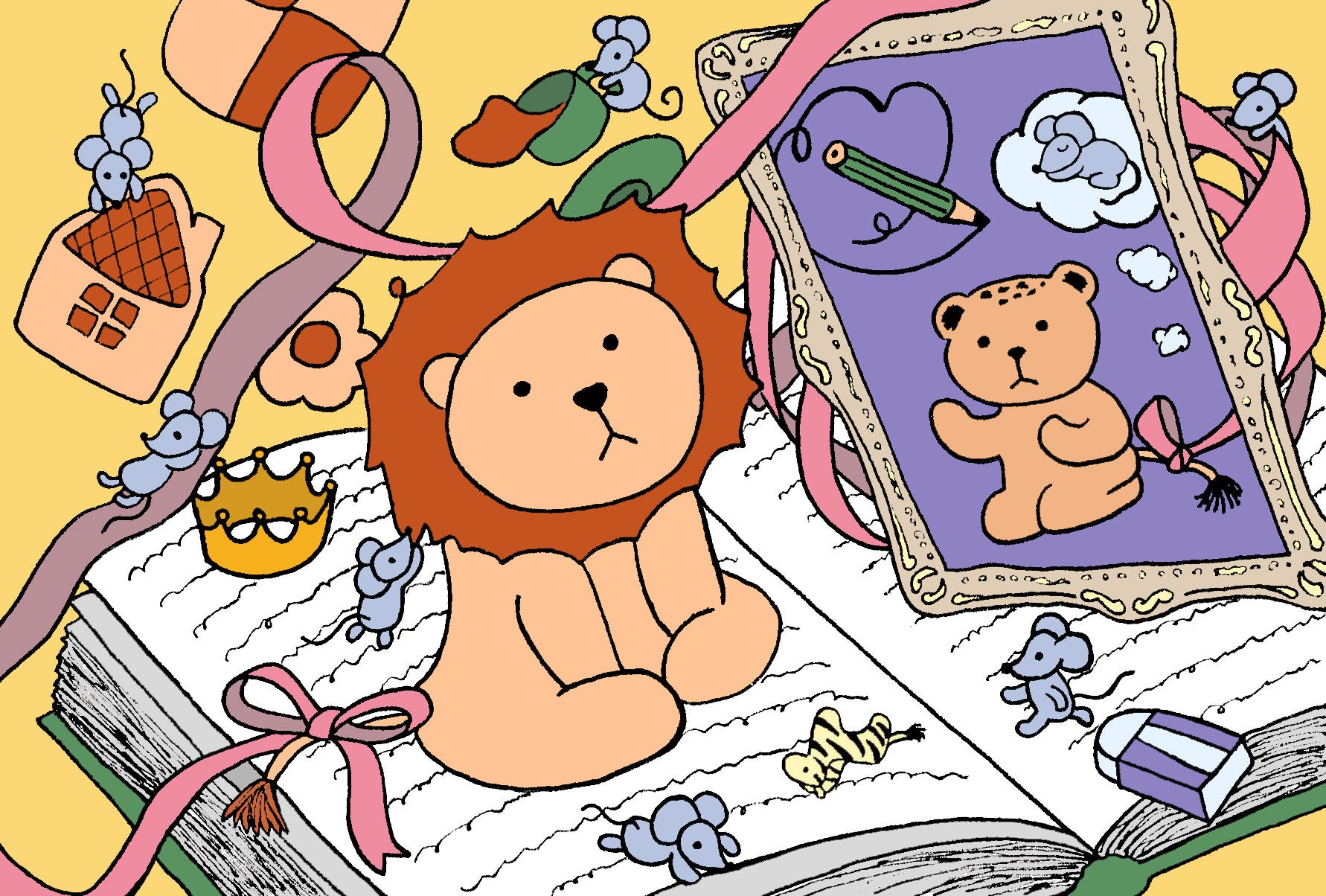The inner child: the younger version of yourself who carries the unhealed wounds that still affects you today. Little mouses are running around and making lion’s life a little mess. Without knowing how to control the environment, he sits timidly and look into the mirror showing himself as a child. Often, we interpret the world with our self-written narrative from our younger age, which can contribute to having unsuitable reaction or decision making from the present situation. But your narrative can be altered and rewritten, which could sort out the seemingly tangled thoughts and chaotic feelings inside of you.