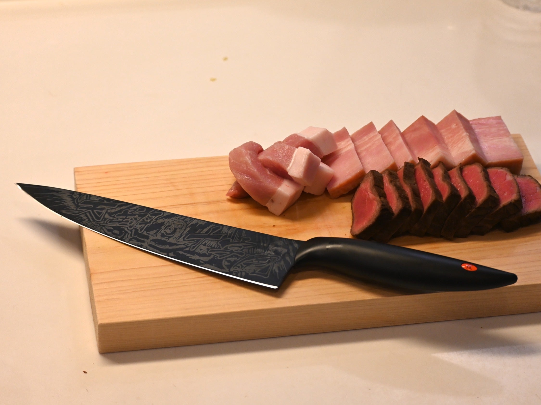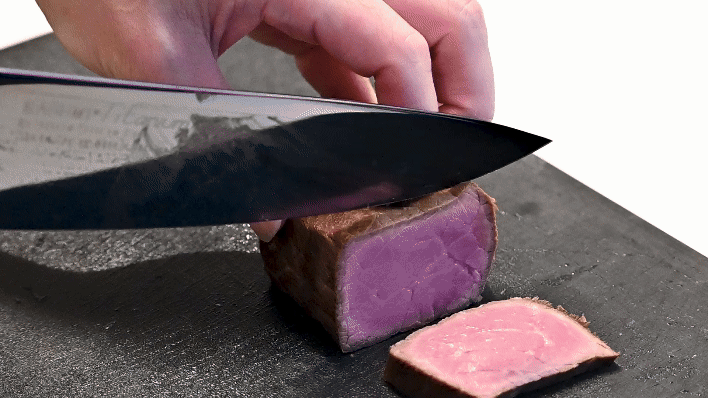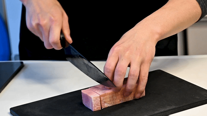 牛刀は肉の塊、ブロック肉や比較的サイズの大きな食材を切るのに適しています。