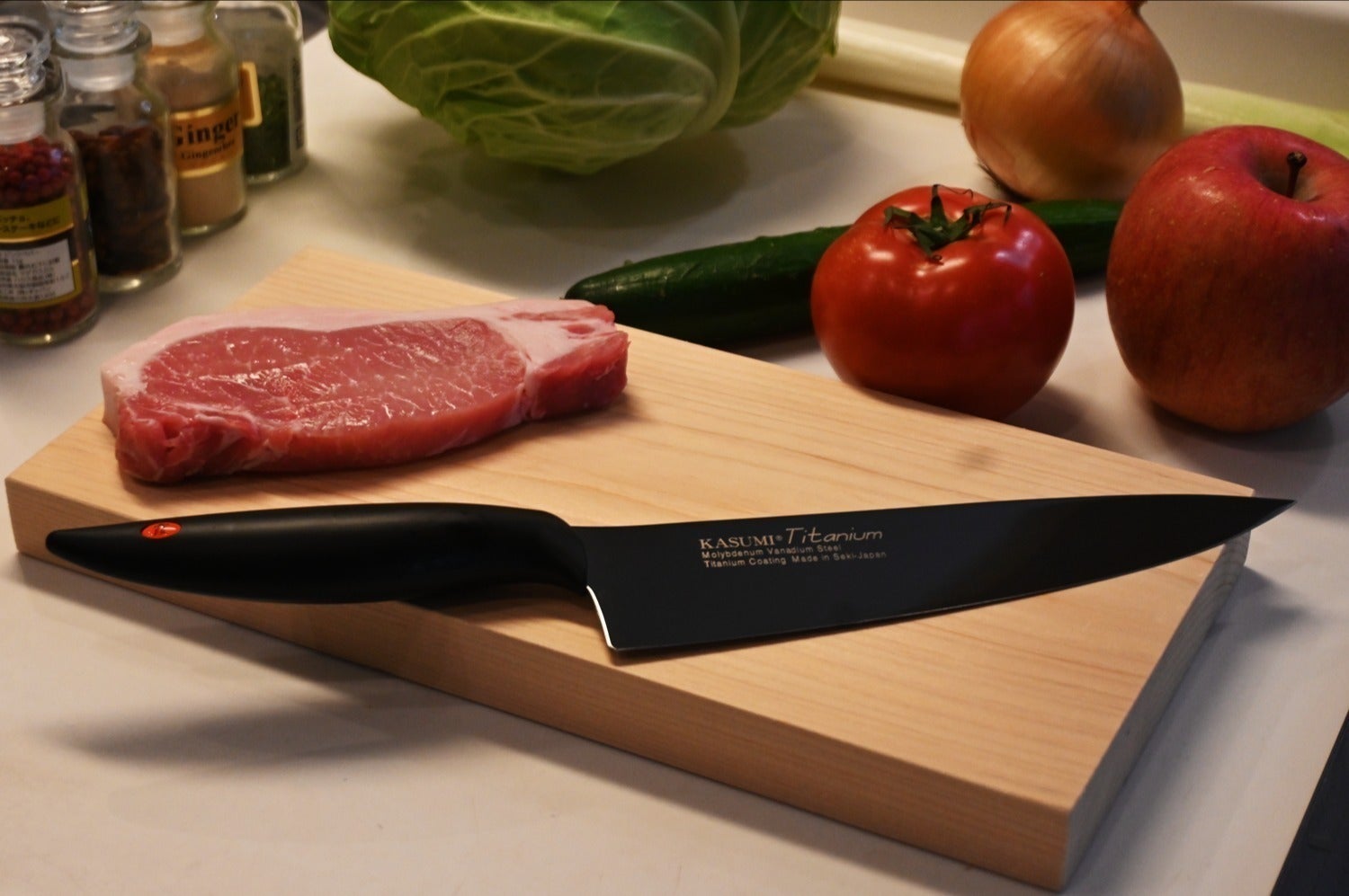 また、耐摩耗性に優れたチタンコーティングが、包丁の寿命を延ばし、錆を防止します。
