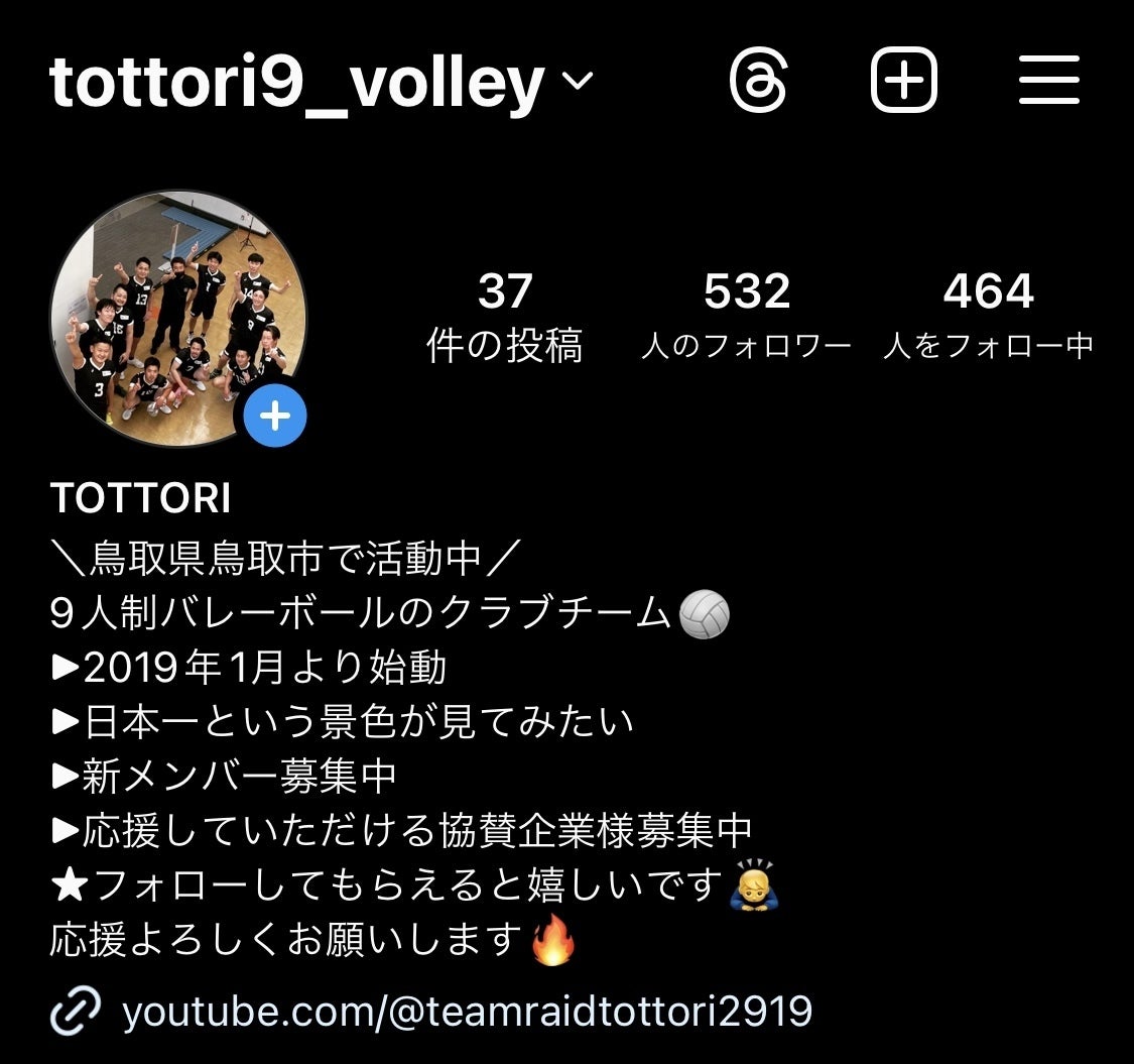 バレーボール社会人9人制クラブチームTOTTORIです。