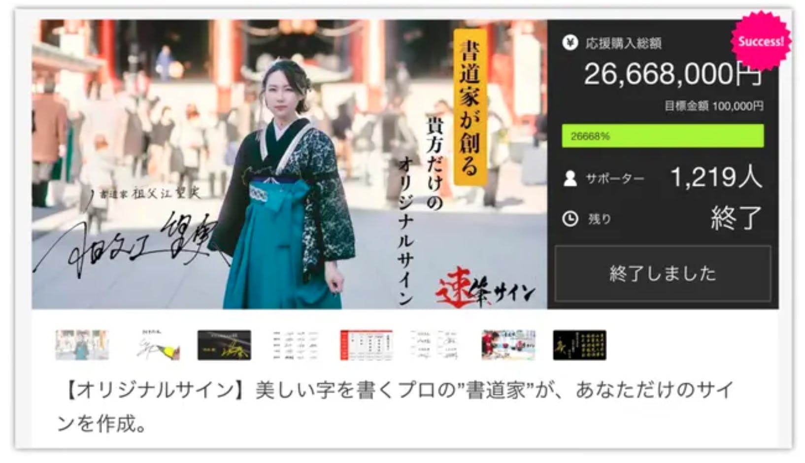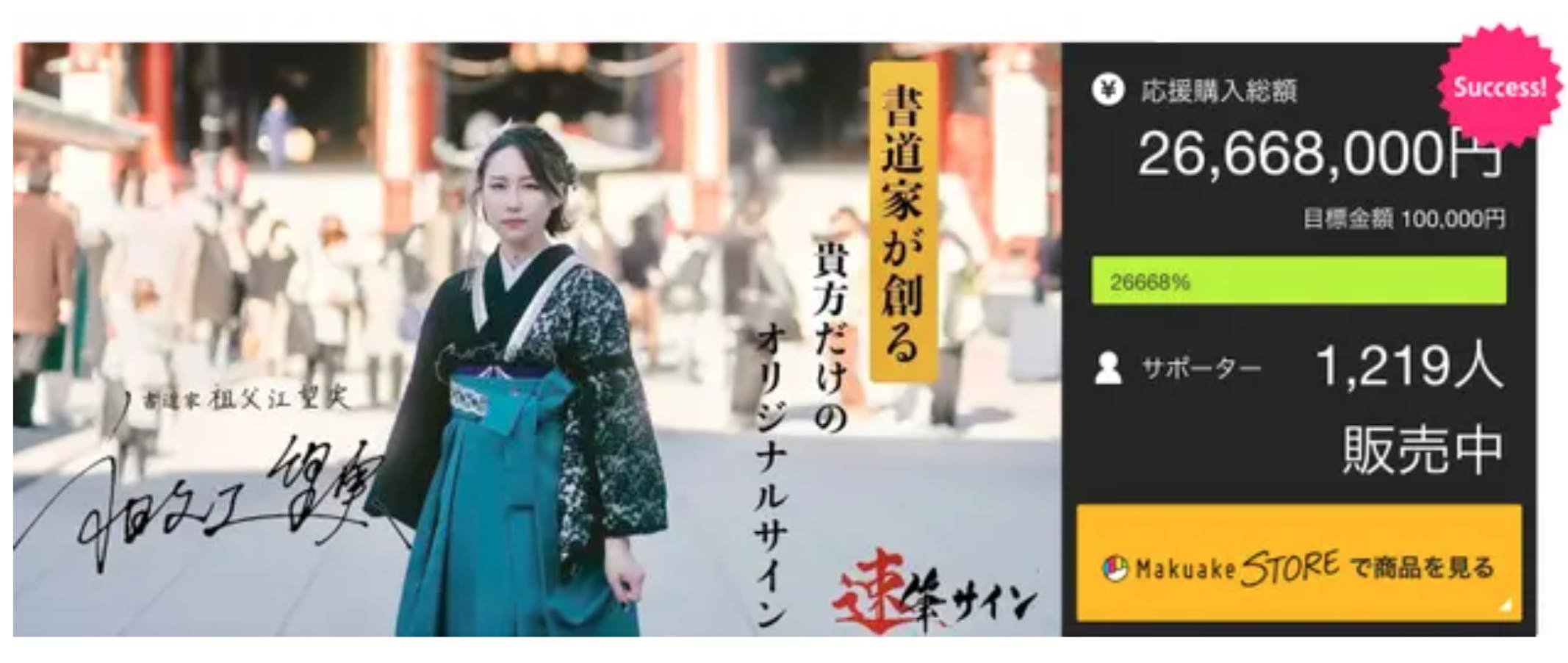 初めてのMakuakeプロジェクト実施で2,600万円越えの支援金額を集め、サイン部門1位を獲得致しました。
