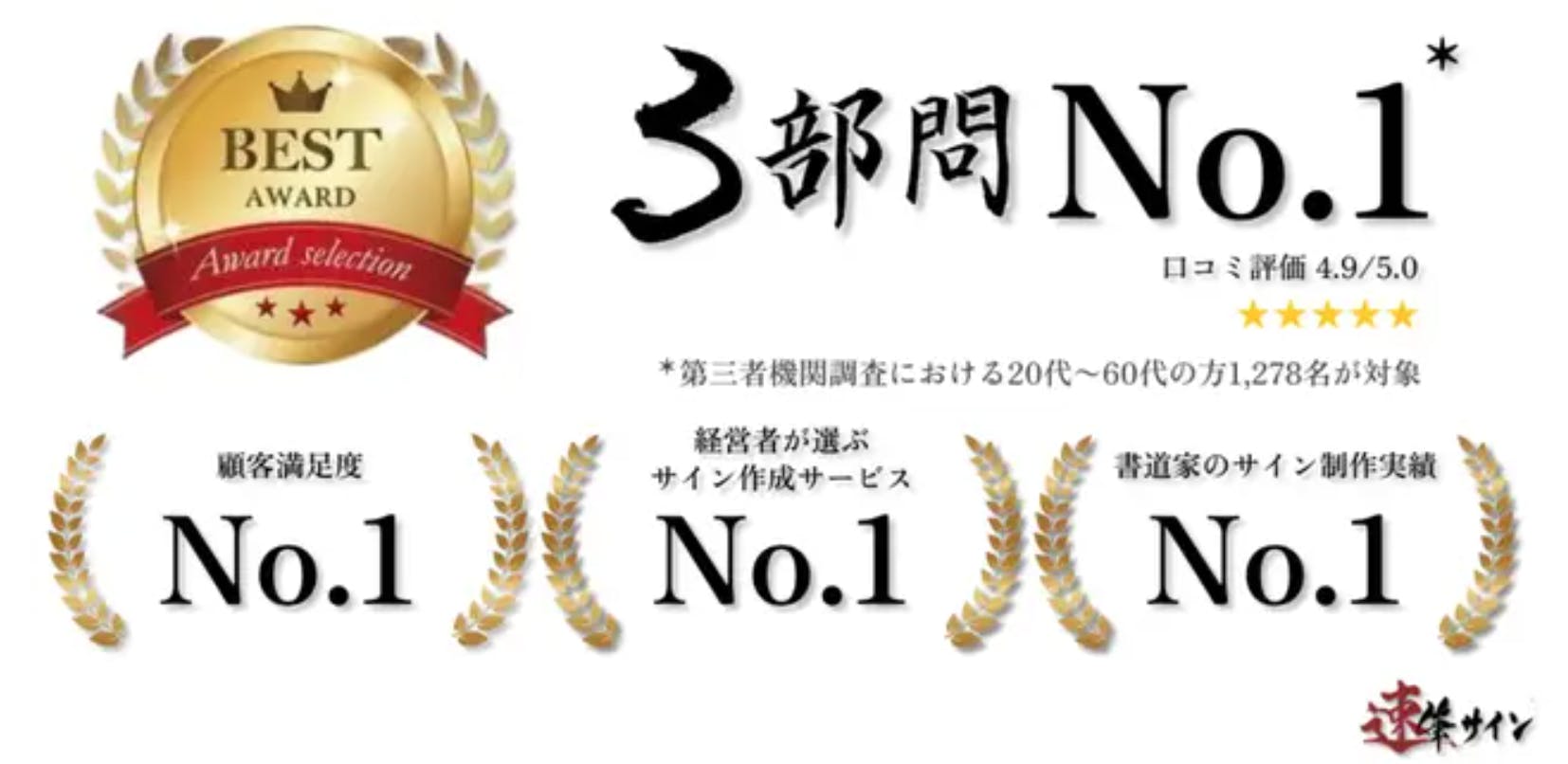 これまで7,000を超える方のサインを作成し、以下3つの項目で3冠を達成することができました。