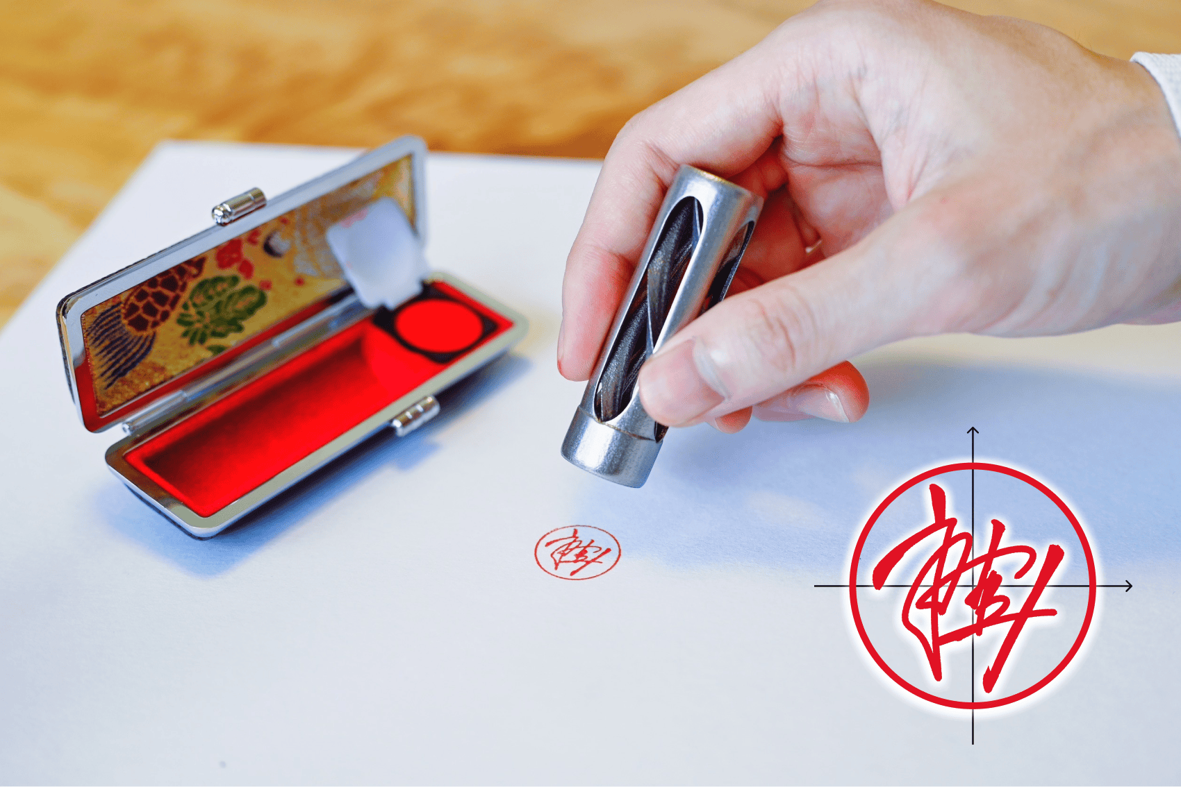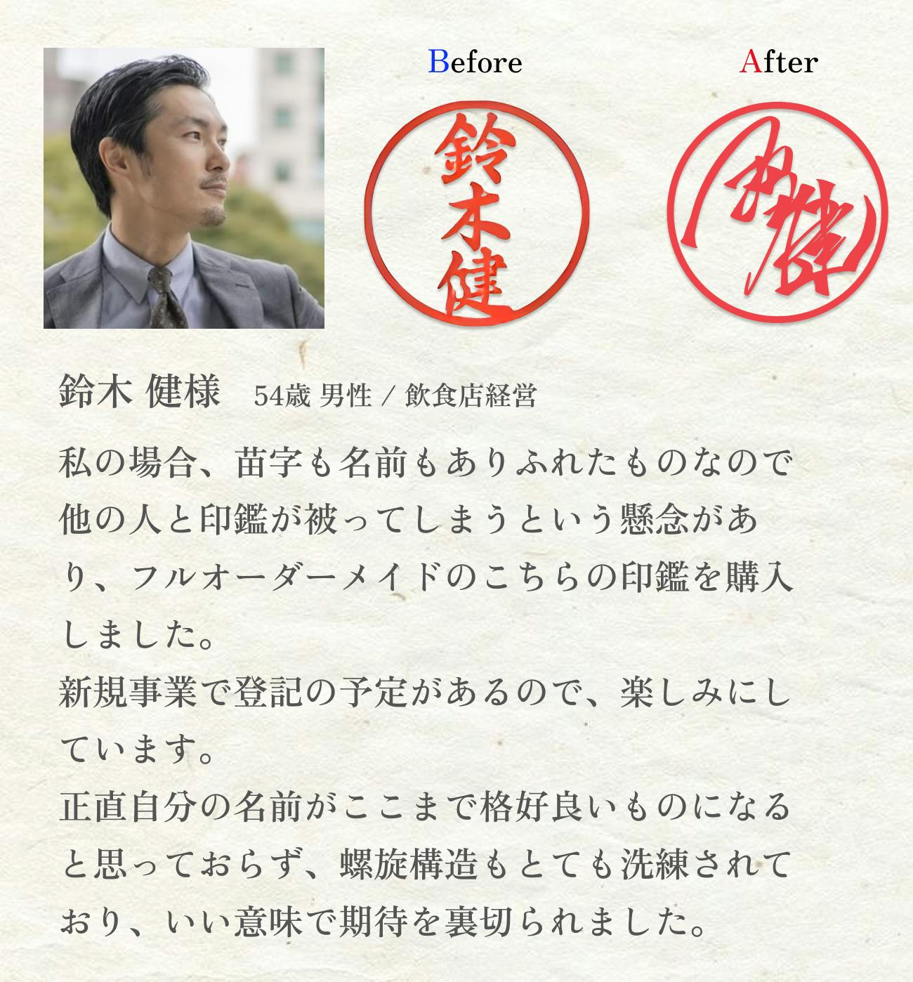 「あなたのお名前を吟味し創られた世界に一つの印鑑」であり、「“自分らしさ”をカタチにするお手伝いをしたいという我々の想いがこもった印鑑」です。