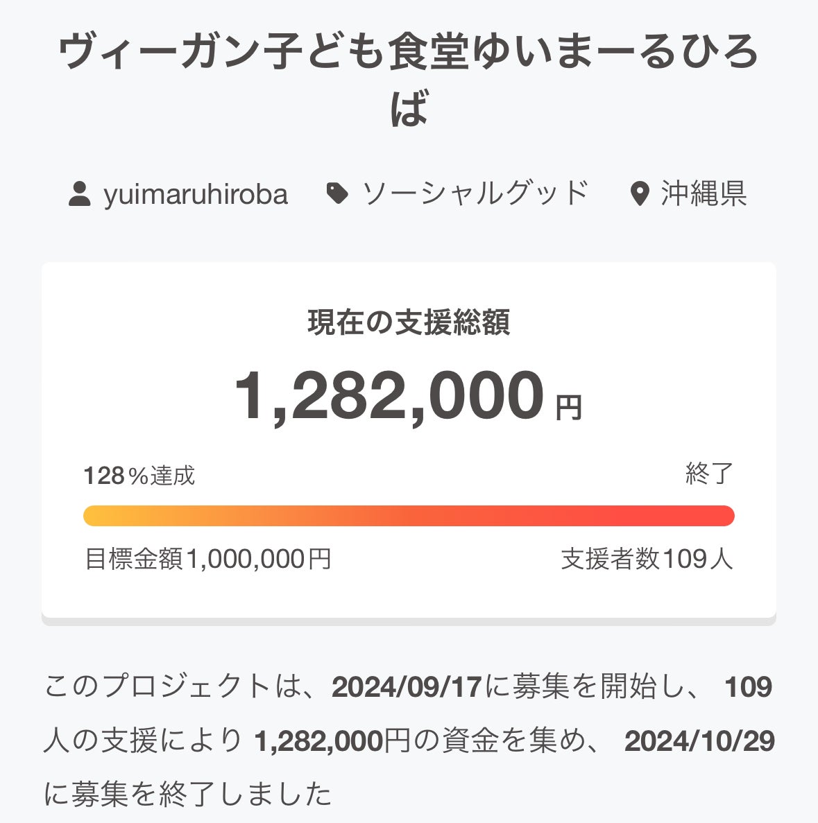 この度は『ヴィーガン子ども食堂ゆいまーるひろば』のクラウドファンディングにご支援いただき誠にありがとうございます!