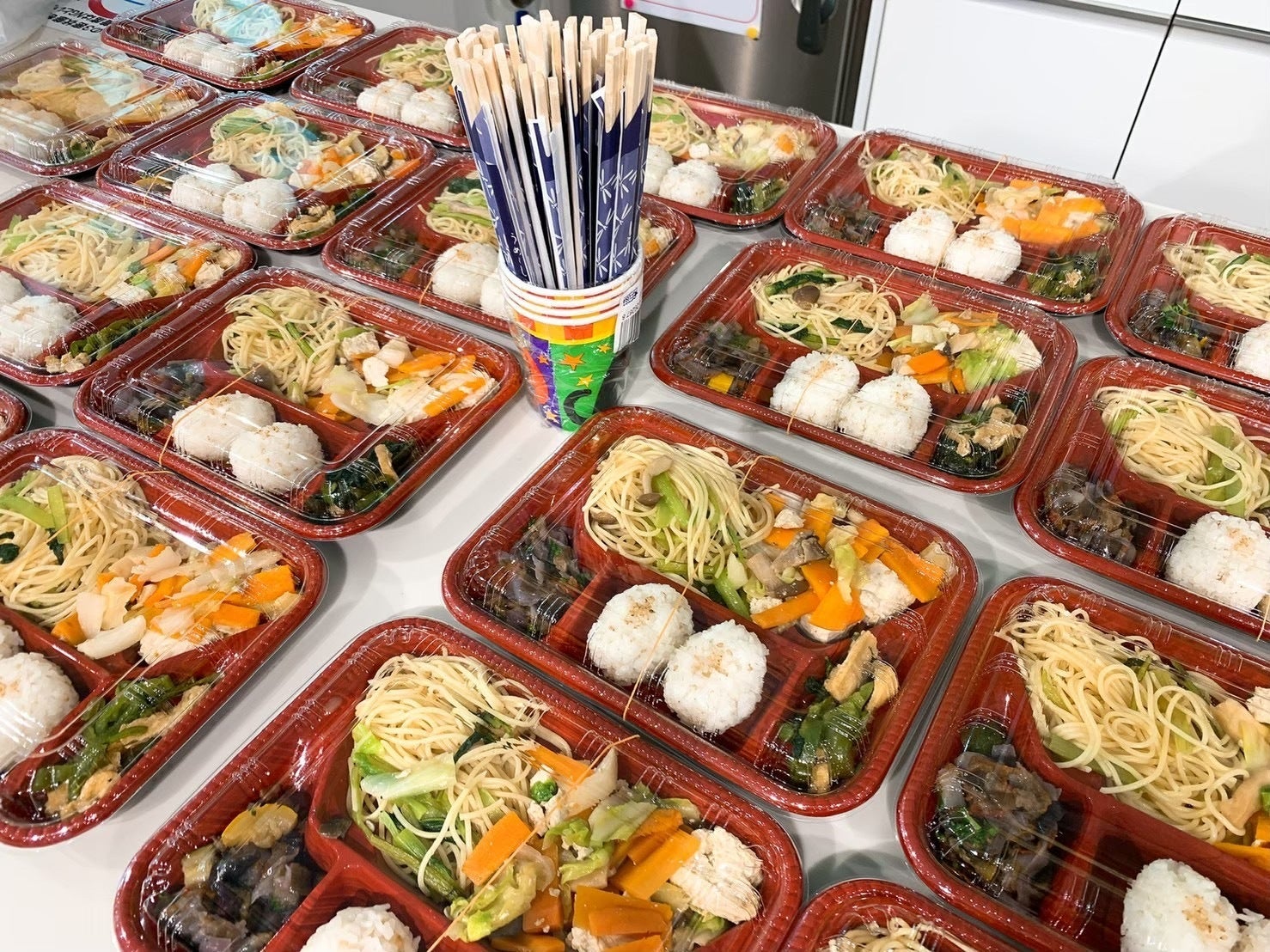 栄養士監修の主食、主菜、副菜2品のヴィーガン弁当を無料でお配りしています。