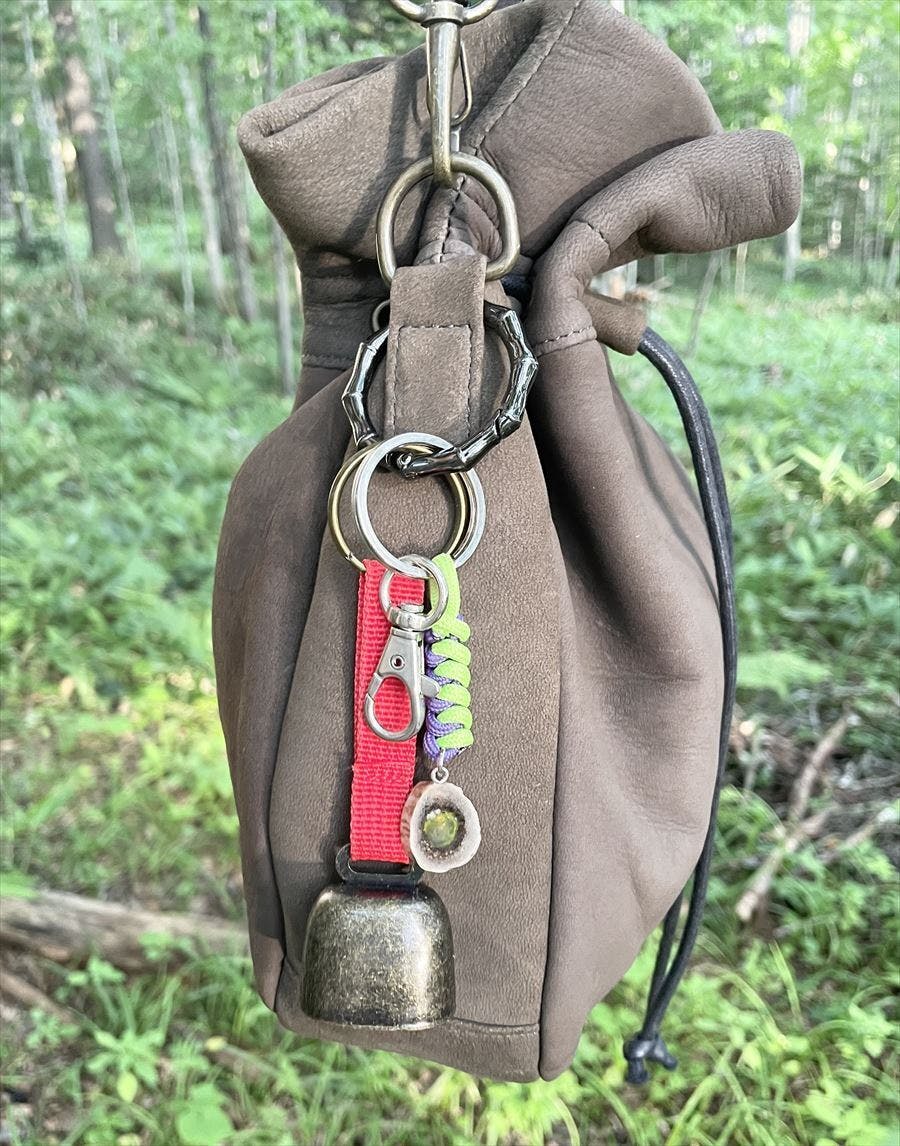 高級感があるけど武骨で丈夫な、黒メタル色の丸型カラビナを1個お付けします!(取り外し可能)