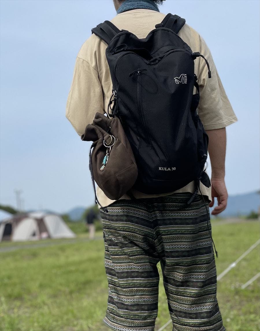 ※リュックに紐が付いていない場合は、付属のカラビナを使うと取り付けできるかと思います。