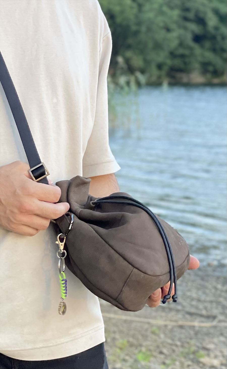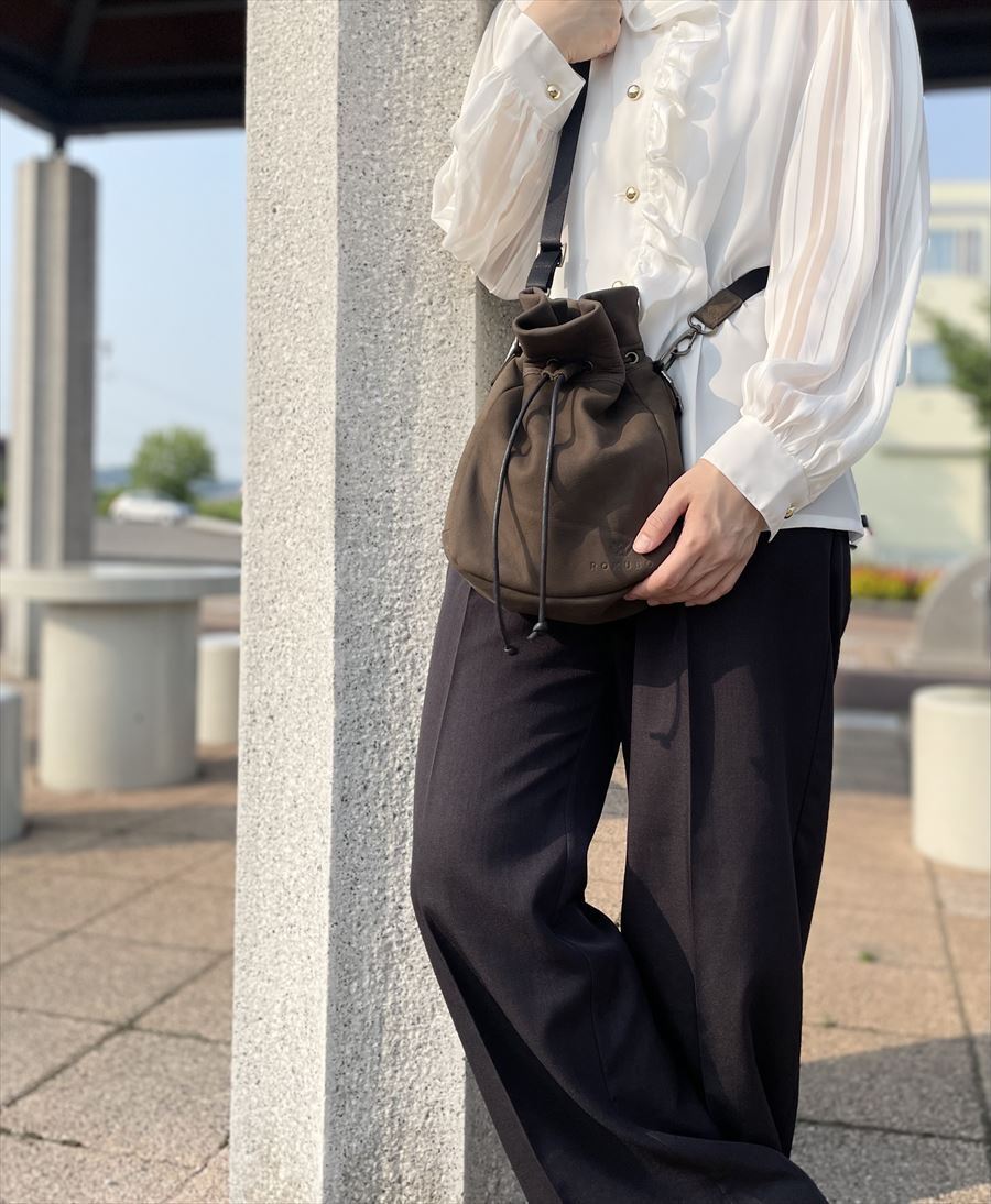 【天然エゾシカ革巾着ミニショルダー 】は大きく分けて準備工程、鞣し工程、再鞣・染色・加脂工程、仕上げ工程など熟練した職人さんの手で皮から革、製品へとつくりあげて行きます。