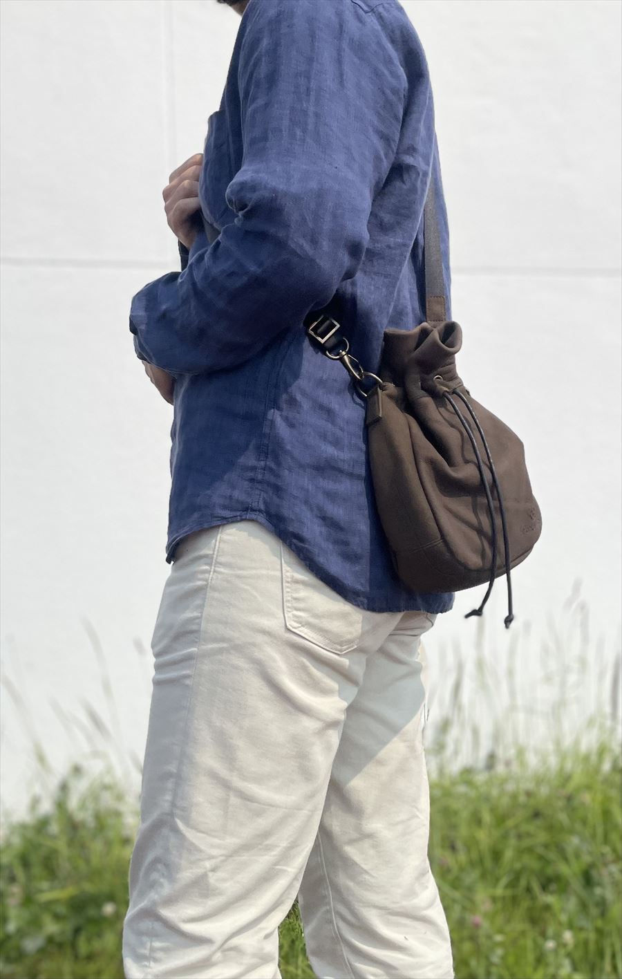 水に強く通気性に優れて【天然エゾシカ革巾着ミニショルダー】残り残り48時間!