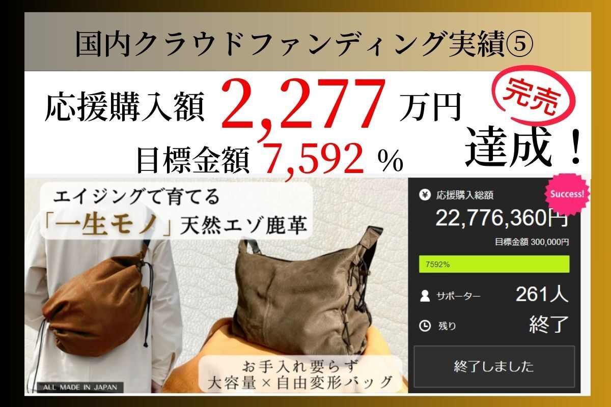 2026/02/24 19:30国内クラウドファンディングにて総額1,485万円を達成した『北海道天然エゾ鹿革ボディバッグ』を、いよいよCAMPFIREにて販売開始いたします。▼プロジェクトページはこちらhttps://camp-fire.jp/projects/862596/view※お気に入り登録をしていただくと、公開直前に通知が届きます。■ 北海道天然エゾ鹿革ボディバッグの特徴● 驚くほど軽く、しなやかで強靭。仕留めてから2時間以内に処理した高鮮度のエゾ鹿革を使用。きめ細かい繊維構造により、柔らかさと耐久性を両立しています。● 大容量なのにコンパクト500mlペットボトルが5本入る収納力。7つのポケットで整理しやすく、旅にも日常にも最適。● 旅でも安心の防犯仕様隠しポケット付き。ファスナーには南京錠の取り付けが可能。● スーツケース装着対応背面スリットでキャリーケースに固定可能。移動時のストレスを軽減します。● お手入れ不要の天然革天然の油分を多く含み、しっとり感が長く続きます。使い込むほどに深みが増す“育つ革”。エイジングも楽しめ、自分色に育てられます。命を無駄にしない循環型のものづくり。狩猟から製品化まで一貫管理した、日本製の天然エゾ鹿革です。2月27日(金)昼12時公開。https://camp-fire.jp/projects/862596/viewよろしくお願いいたします。 もっと見る
