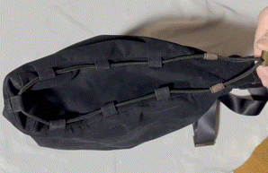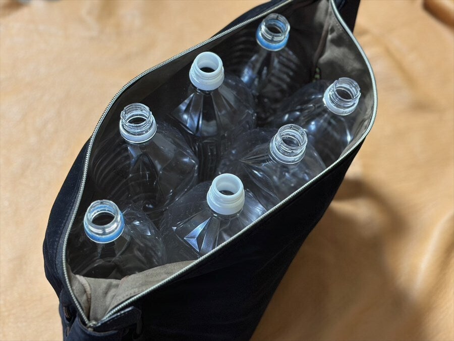 両サイドの紐を伸ばして一番大きい状態の容量は15L。