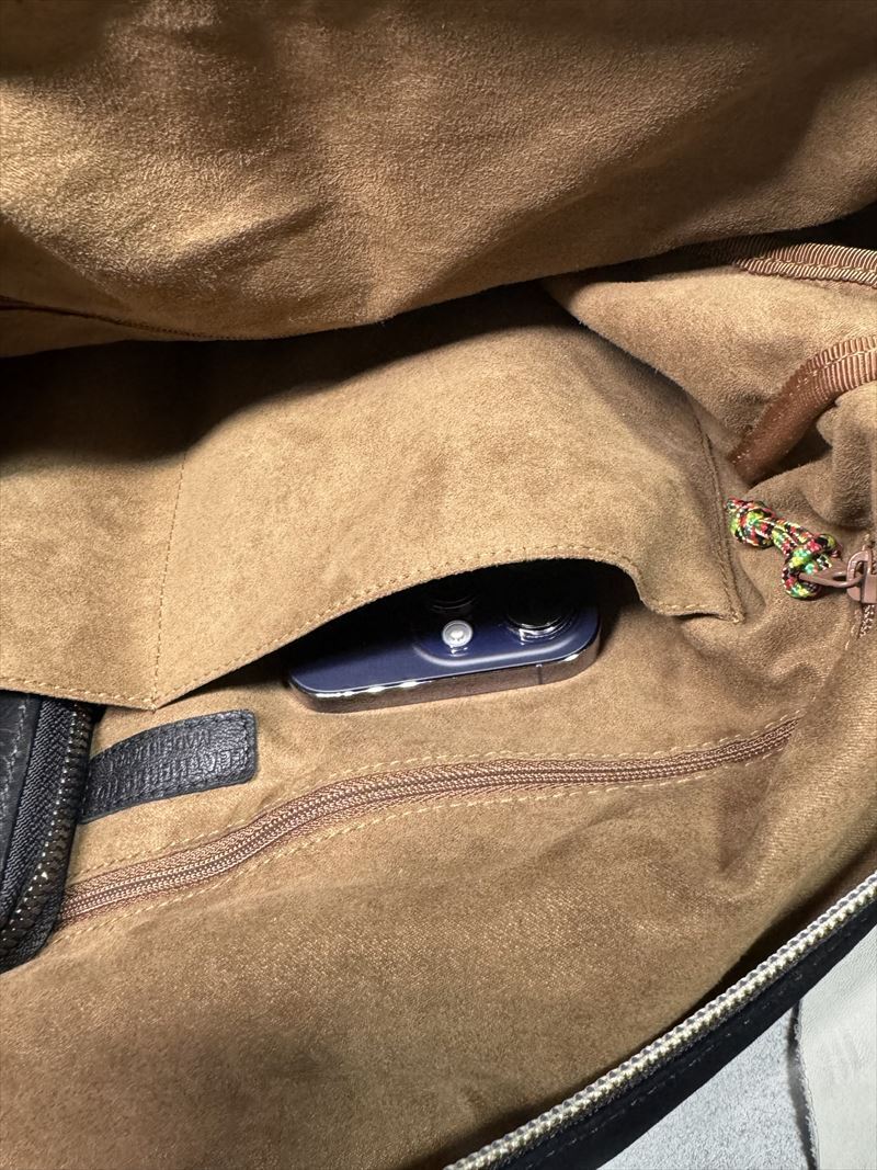 ポケットの深さはiPhone15proや16proがちょうど入るくらいです。(幅は余裕があります)