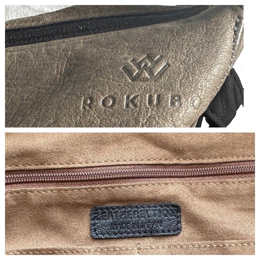 表面の隅にROKUBOのロゴ刻印、内側にLEATHERECTIONのロゴのタグがさり気なく付いています。