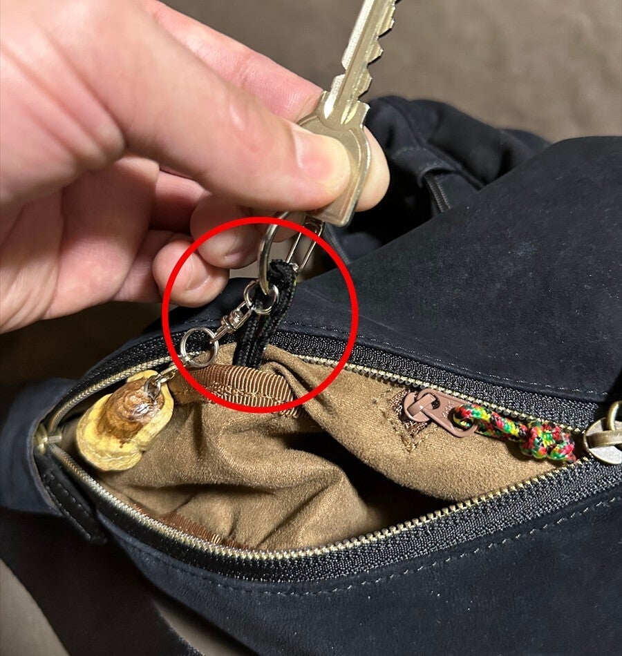 また、内側のポケットを開け閉めするチャックの頭にもパラコードを付けて、開け閉めをしやすくしています。