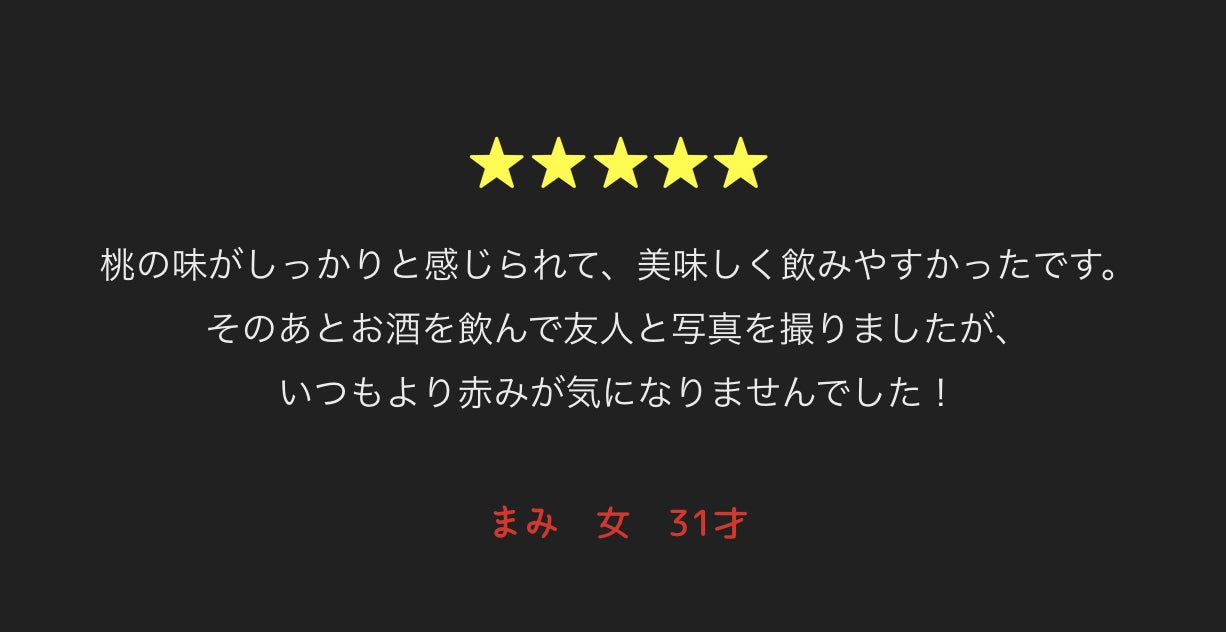 飲酒の風潮がある場面や忘年会や接待の場で飲酒を余儀なくされる時など、飲まなければいい、で済まない場面がよくあるのではないかと存じます。加え、お酒が本当は大好きなのに症状が恥ずかしいから宅飲みだけで我慢している、もしくは飲むことをキッパリ諦めているという方が多くいらっしゃいます。どのようなシーンであれ、赤ら顔や体調不良で飲酒を諦めてしまいかけている際に、是非「赤ん」を試していただけたらと思います。