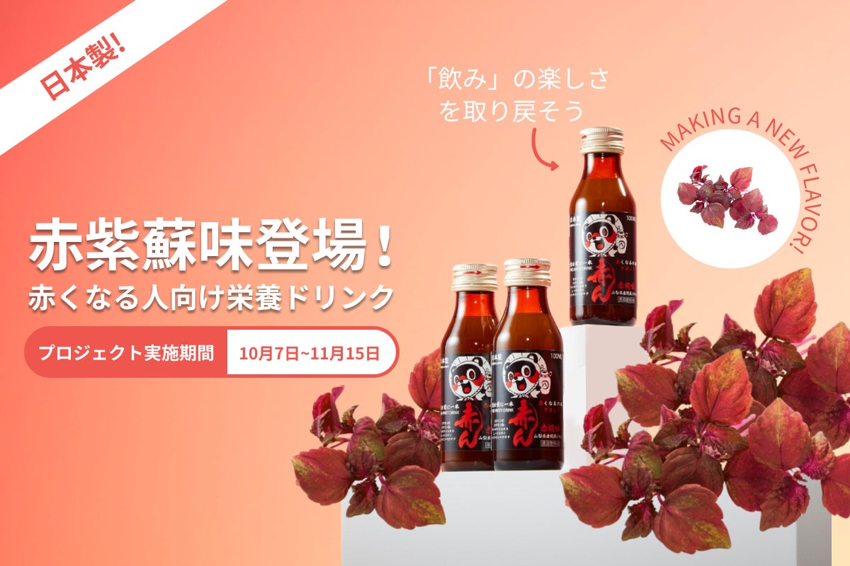 何年もの試行錯誤を繰り返し、2022年についに「赤ん 紅梅味」の販売まで持っていくことに成功し、2024年には「赤ん 赤桃味」の製造も始めさせていただきました。今まで多くの人々に赤んを愛用していただき、サポートをしてまいりましたが、我々はより良い商品を目指し日々邁進しております。その結果、今回新たに「赤ん 赤紫蘇味」の開発に成功いたしました!「赤ん」は飲酒後の赤ら顔のみでなく、頭痛、眠気、吐き気、動悸、体温上昇、集中力の低下など多くのお悩みの助けになる商品となっております。